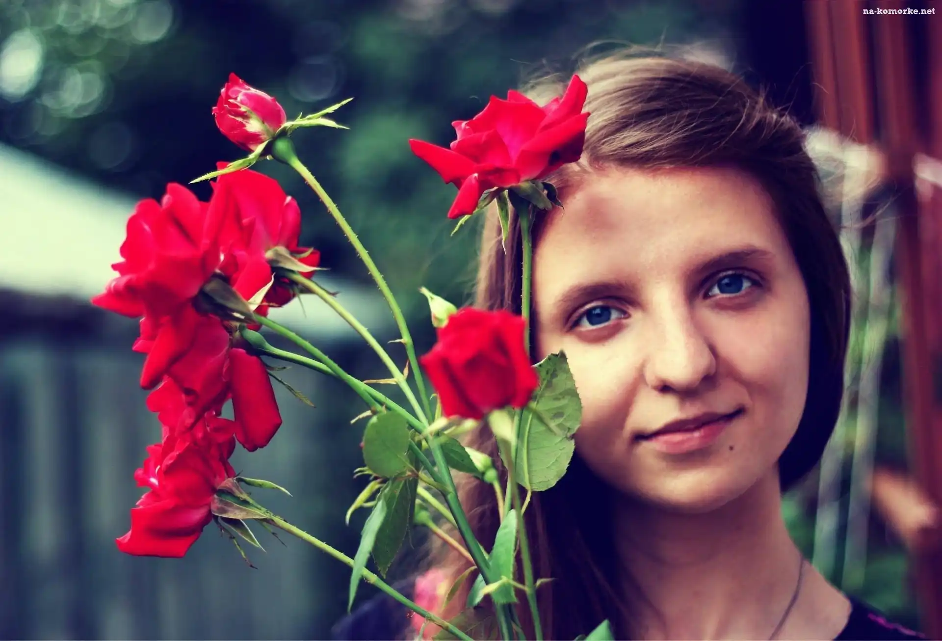 Kwiaty, Kobieta, Niebieskie, Oczy, Czerwone na Komórkę