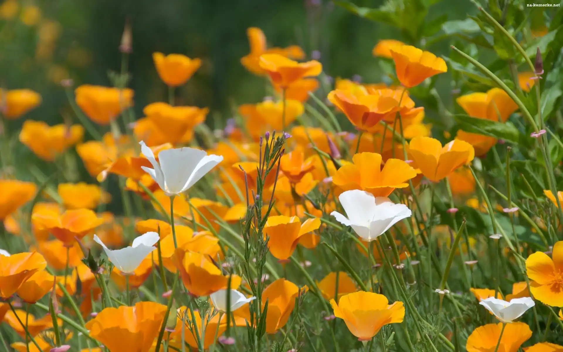 Kwiaty, Łąka, Żołto, Białe na Komórkę