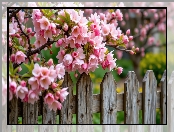 Listki, Drzewo owocowe, Kwiaty, Płot, Różowe, Gałązki na Komórkę