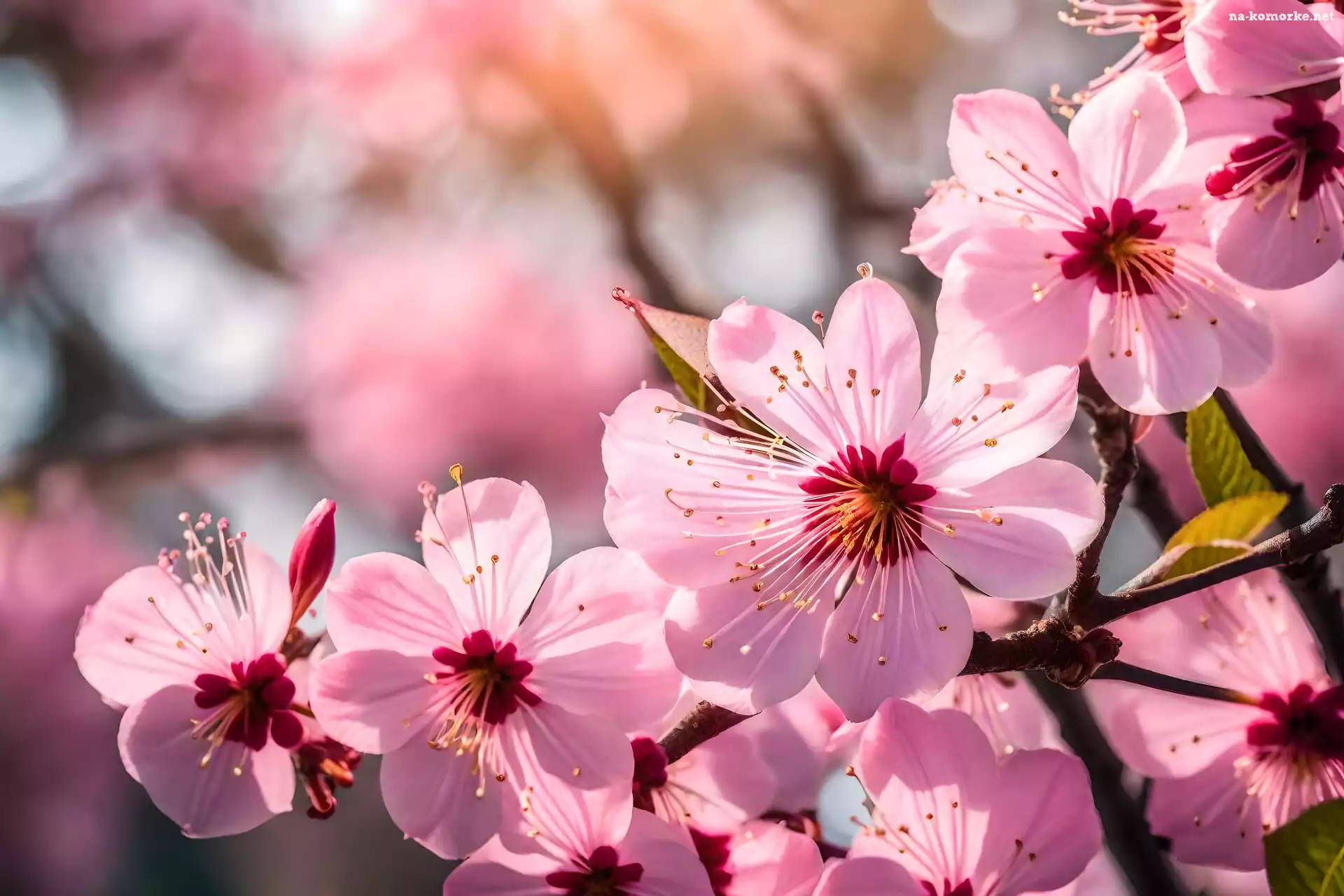 Różowe, Liście, Gałęzie, Kwiaty, Drzewo owocowe na Komórkę