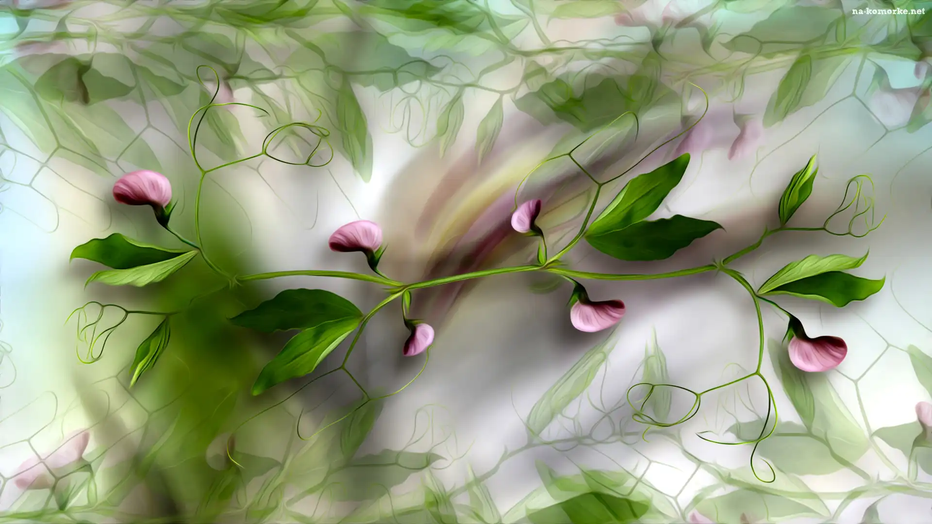 Pąki, Kwiaty, Gałązka, Grafika, Groszek pachnący, Liście na Komórkę