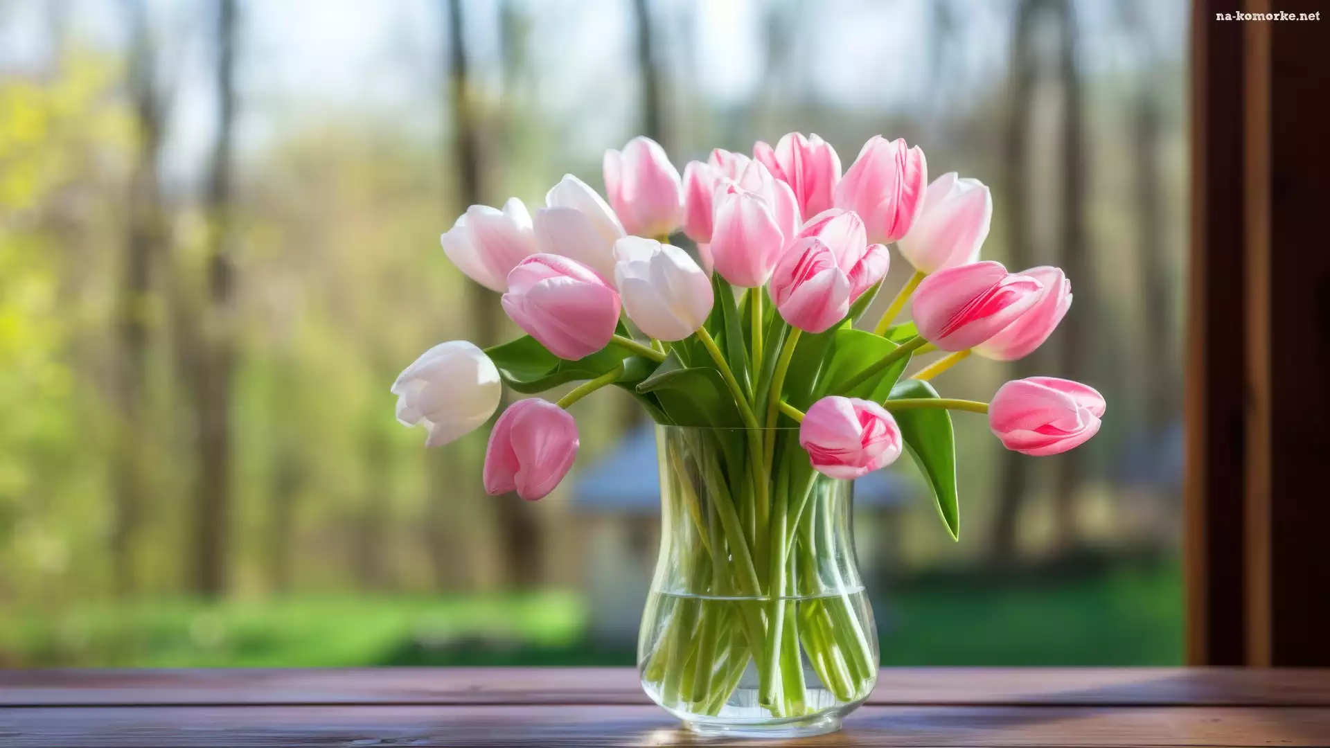 Tulipany, Kwiaty, Parapet, Różowe, Okno na Komórkę