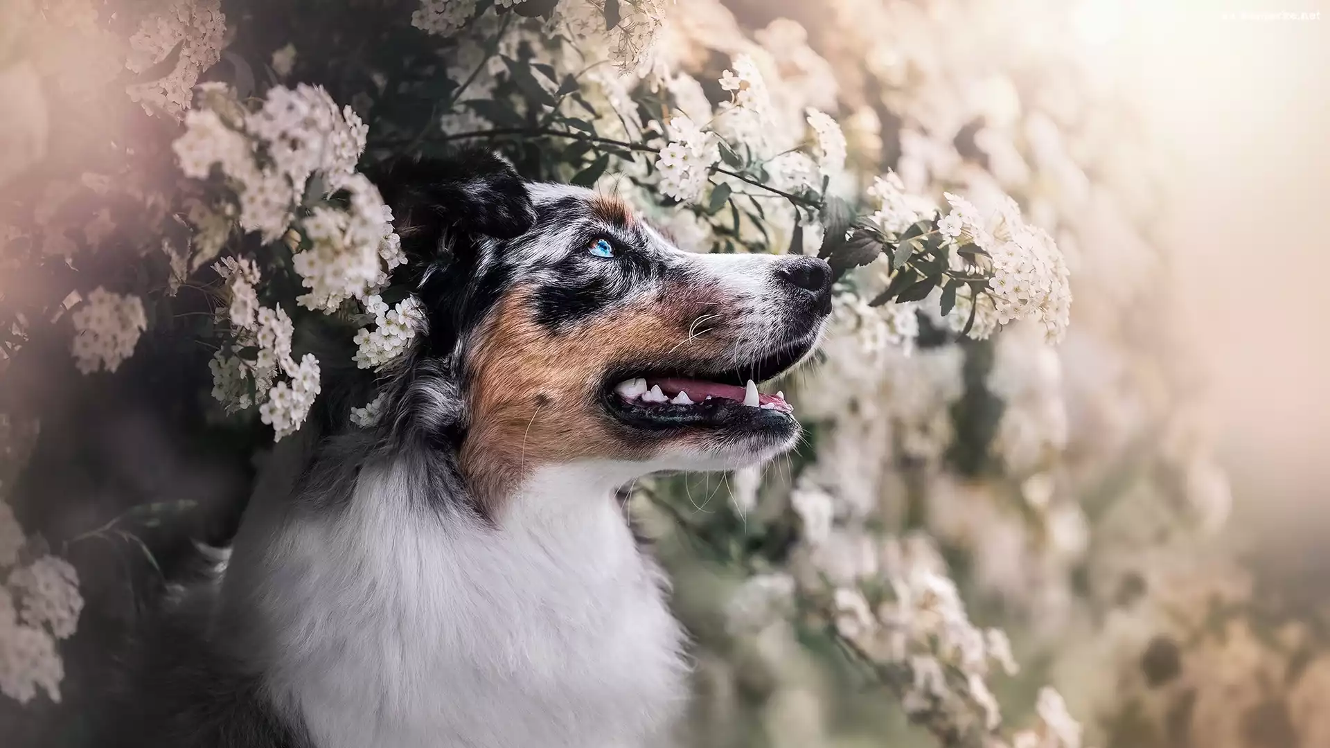 Gałęzie, Kwiaty, Pies, Owczarek australijski na Komórkę
