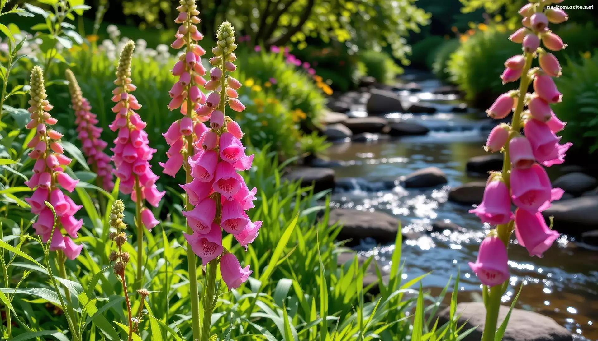 Naparstnica, Kwiaty, Potok, Różowe, Grafika na Komórkę