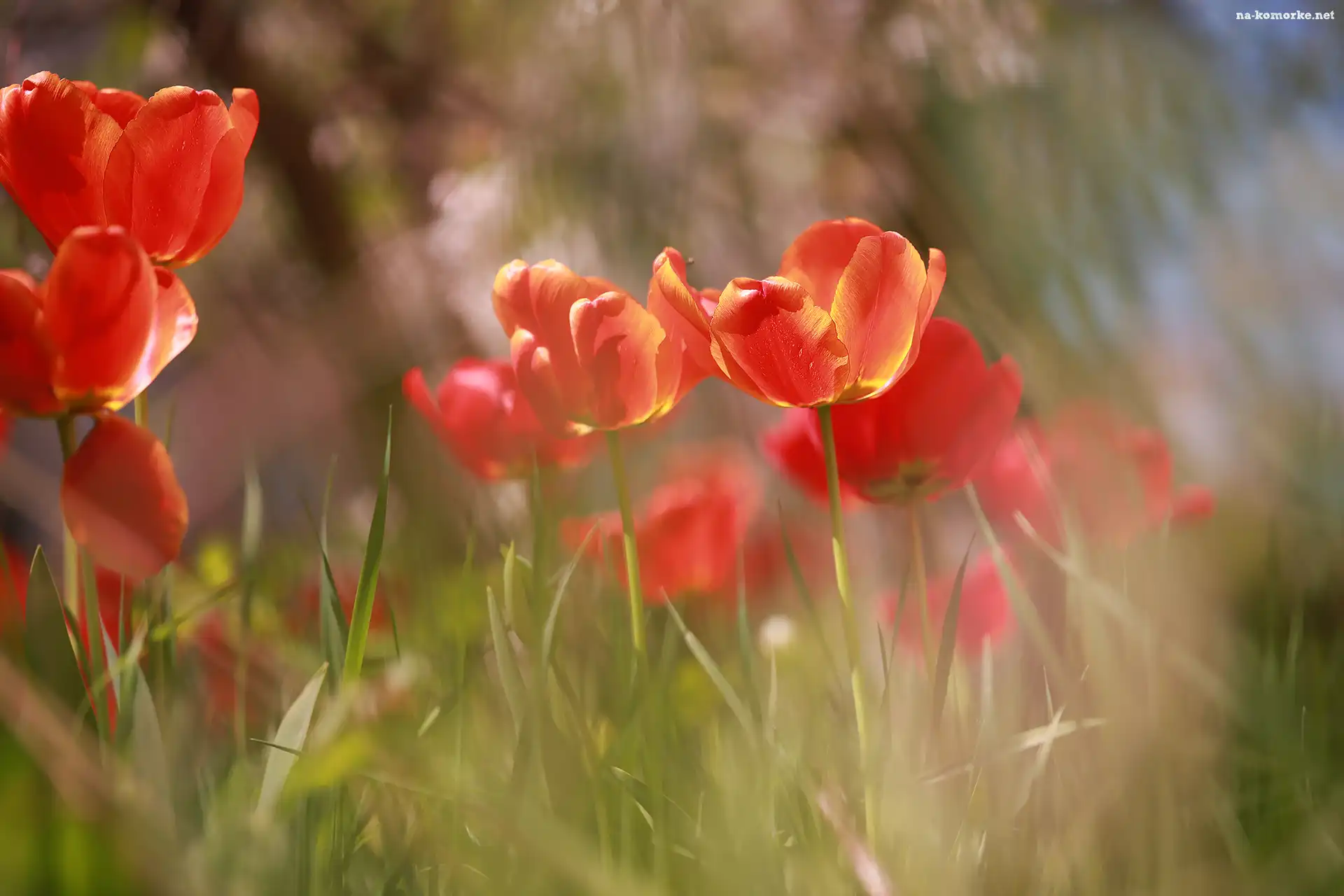 Czerwone, Kwiaty, Rozmyte, Tulipany, Tło na Komórkę