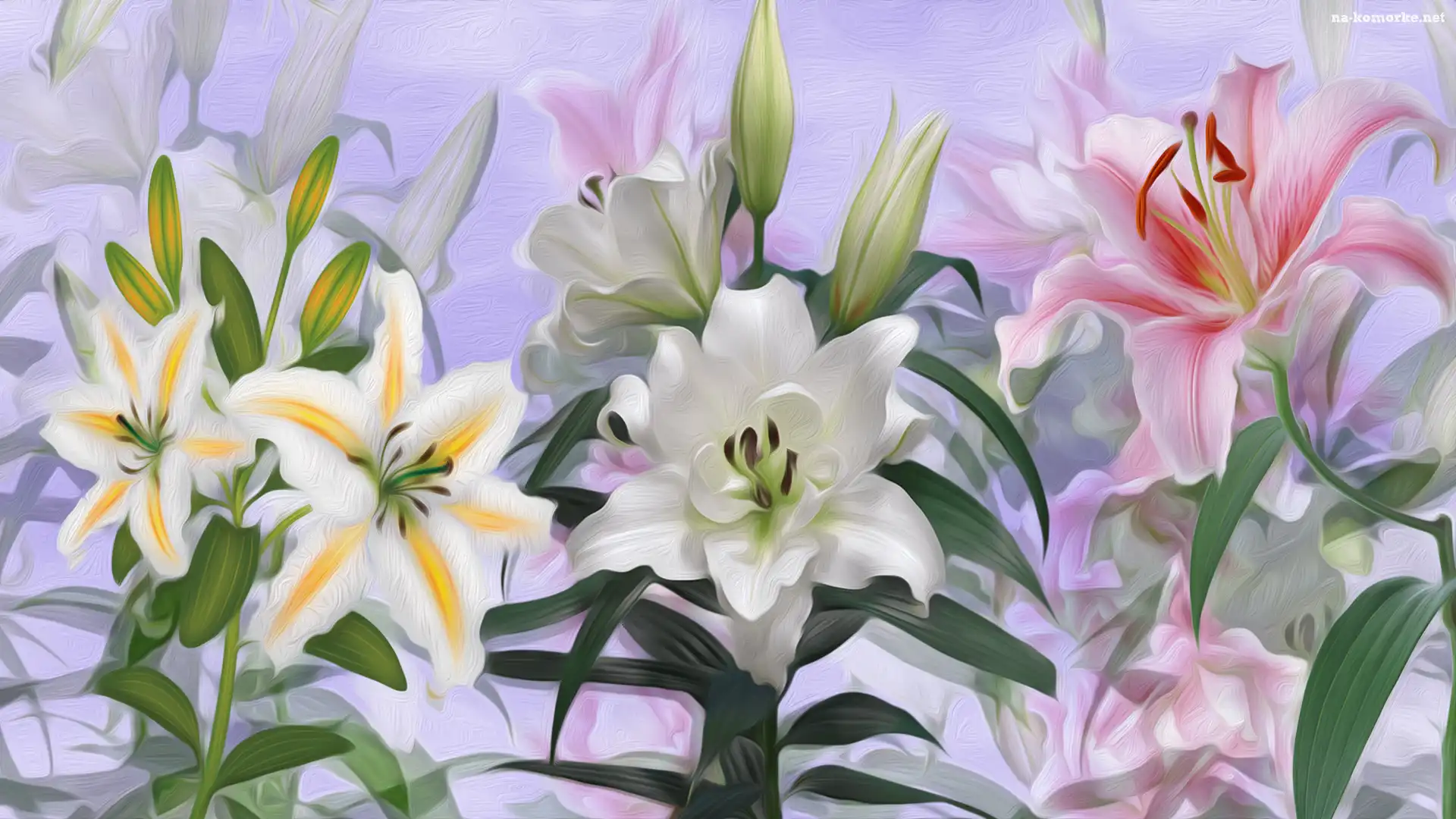 Kwiaty, Grafika, Różnobarwne, Lilie na Komórkę