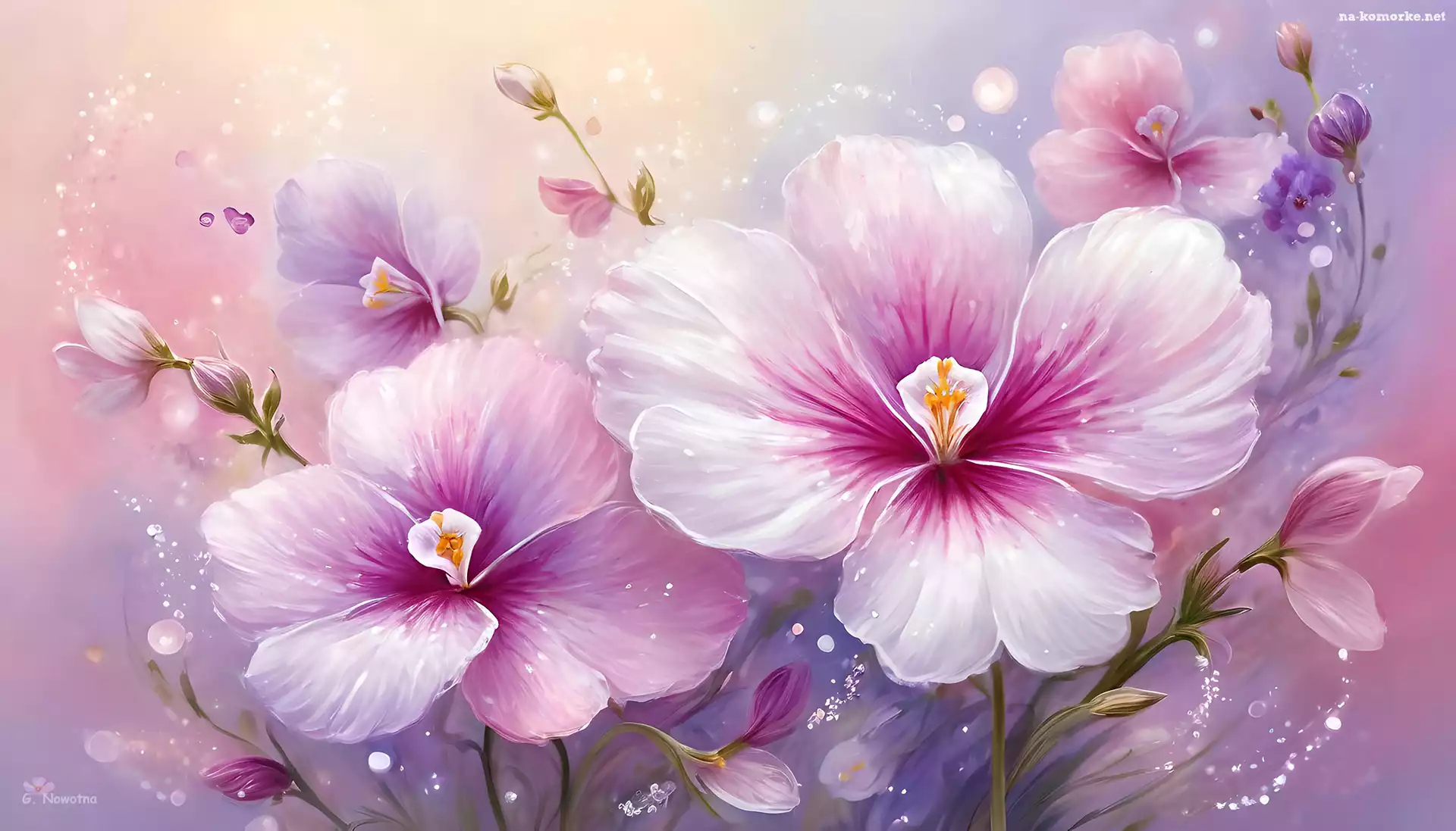 Różowo-białe, Grafika, Kwiaty na Komórkę