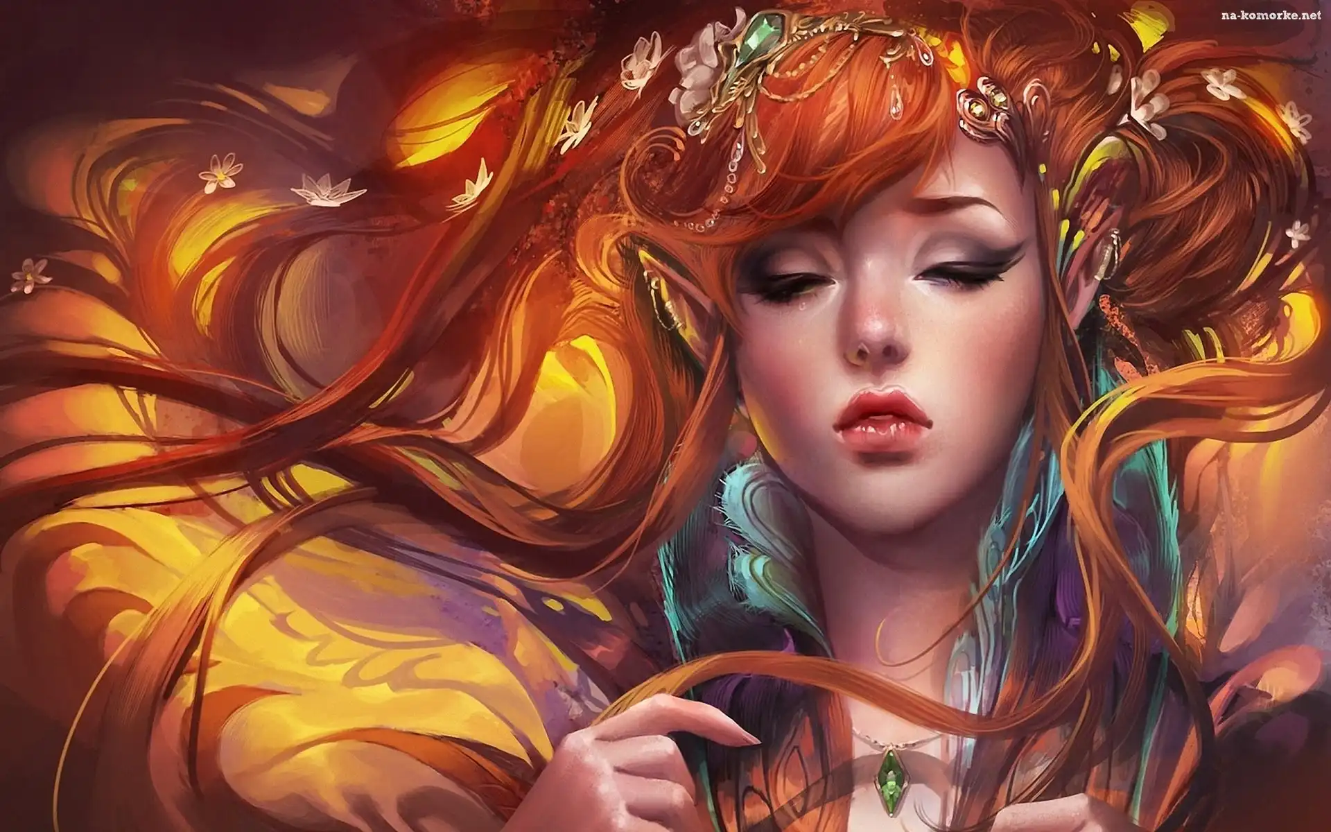 Kwiaty, Dziewczyna, Elf, Rude, Włosy na Komórkę