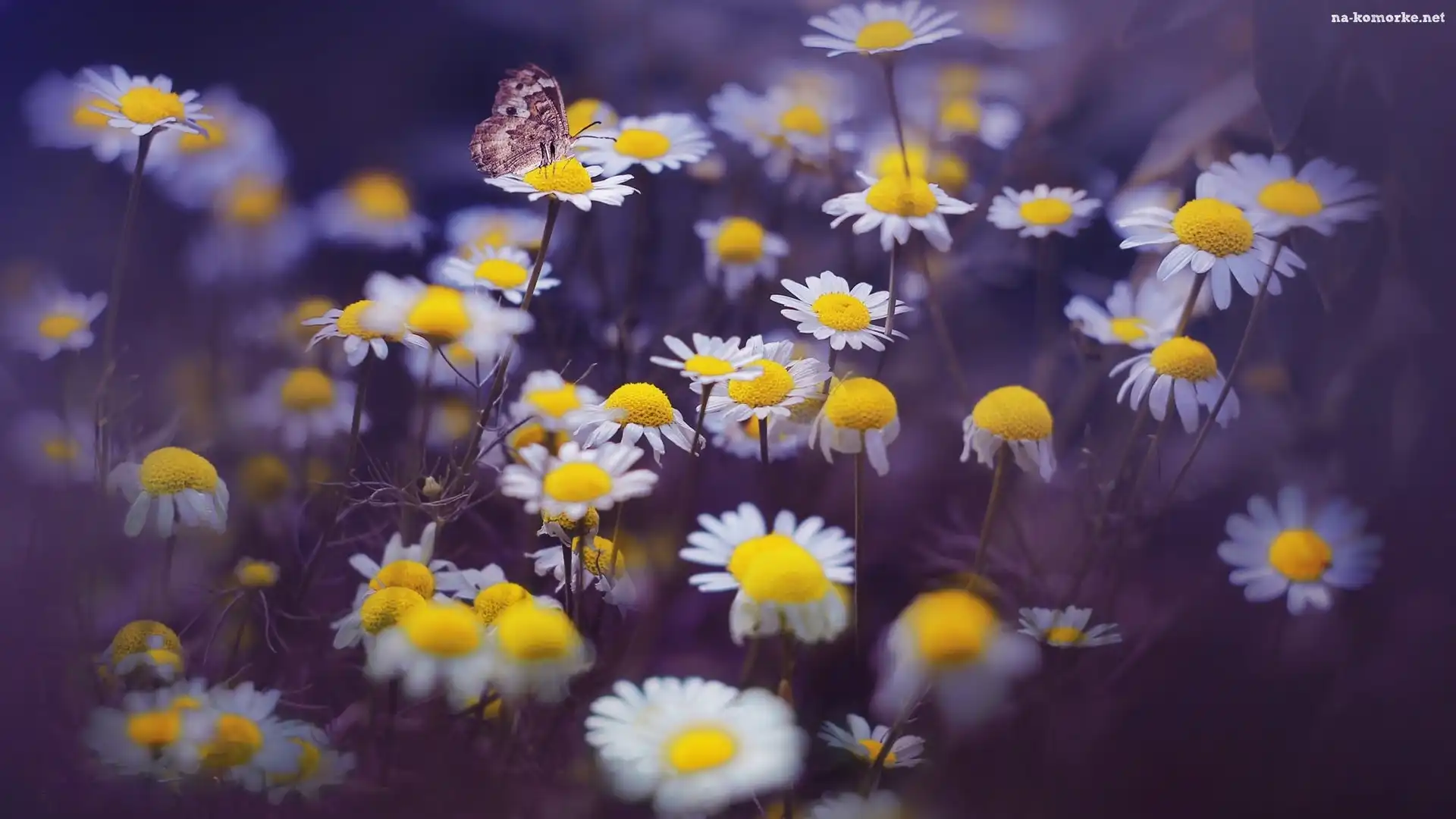 Kwiaty, Rozmycie, Rumianki, Motyl na Komórkę