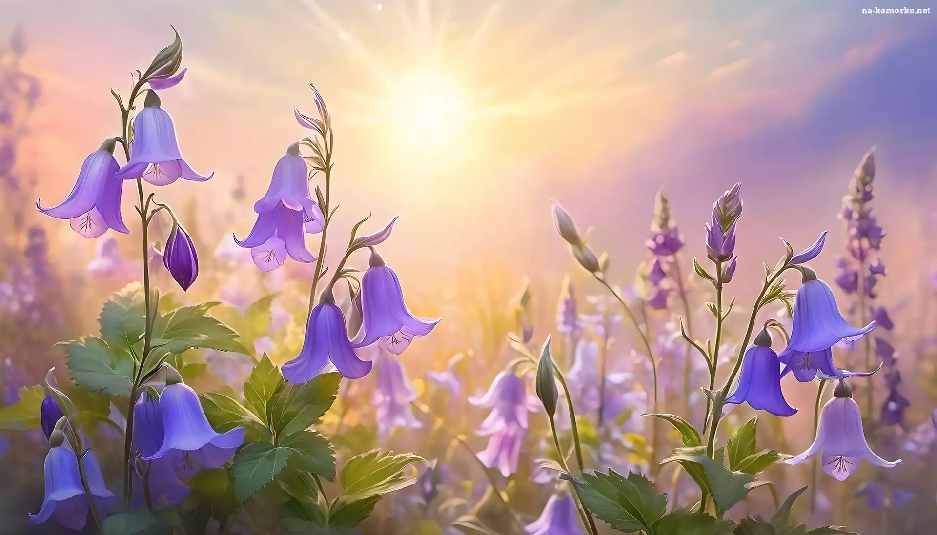 Fioletowe, Kwiaty, Słońce, Dzwonki, Grafika na Komórkę