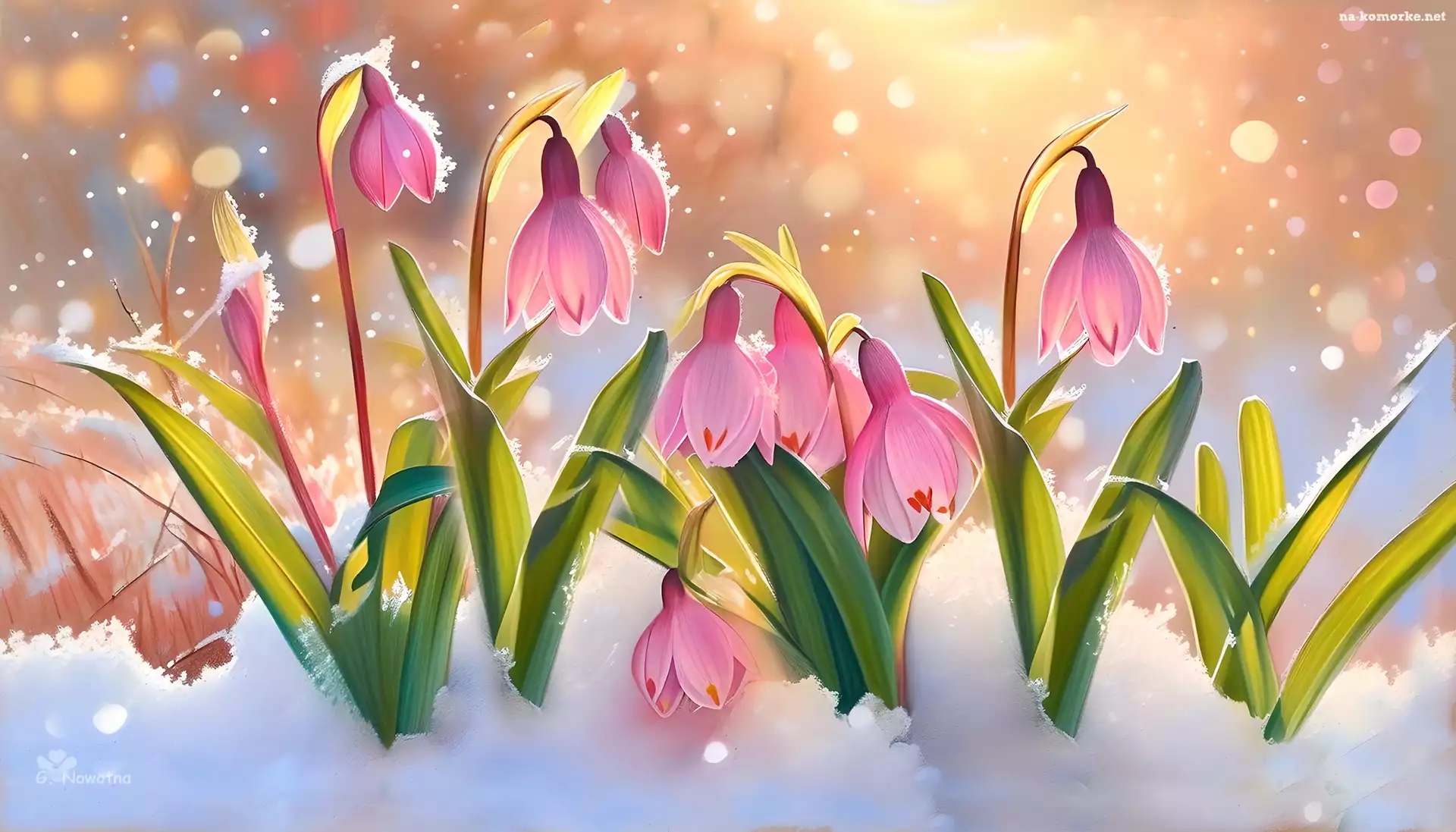 Pochylone, Kwiaty, Śnieg, Różowe, Grafika na Komórkę