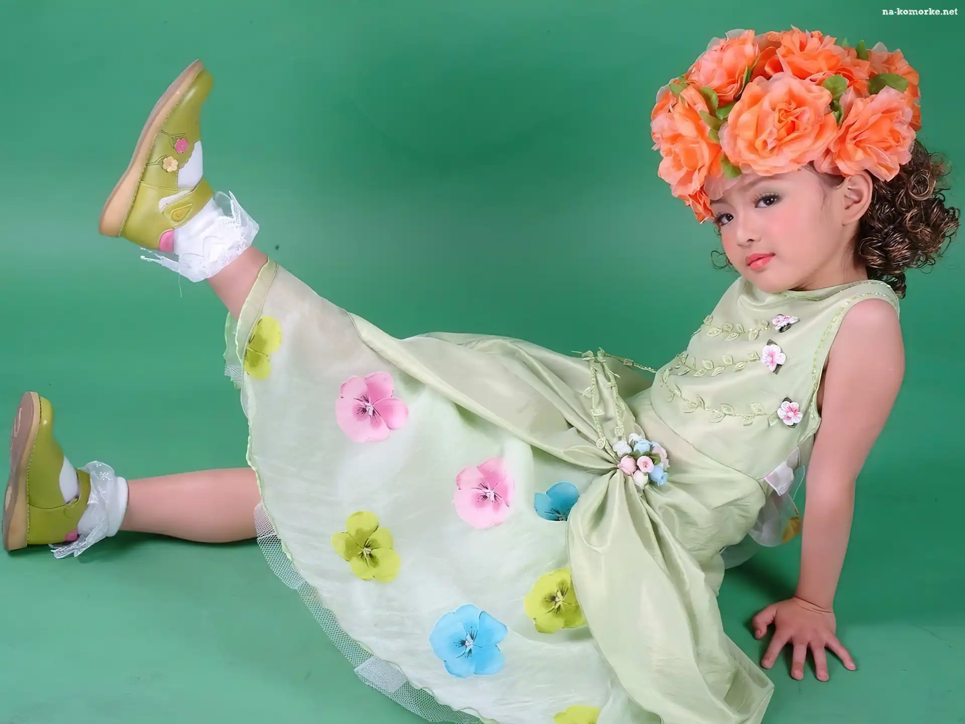 Kwiaty, Dziewczynka, Wianek, Sukienka, W na Komórkę