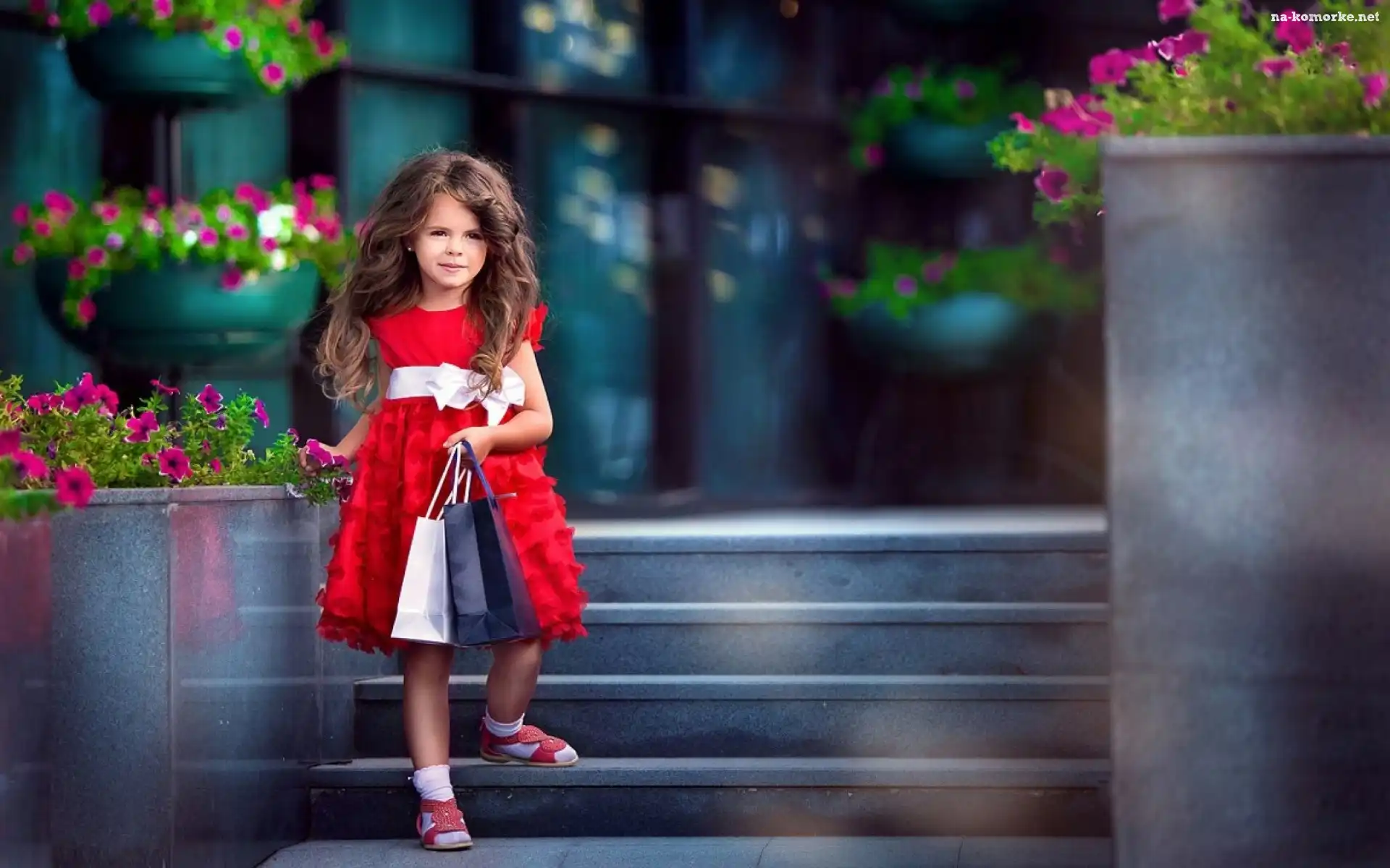 Kwiaty, Dziewczynka, Sukienka, Torebki, Schody na Komórkę
