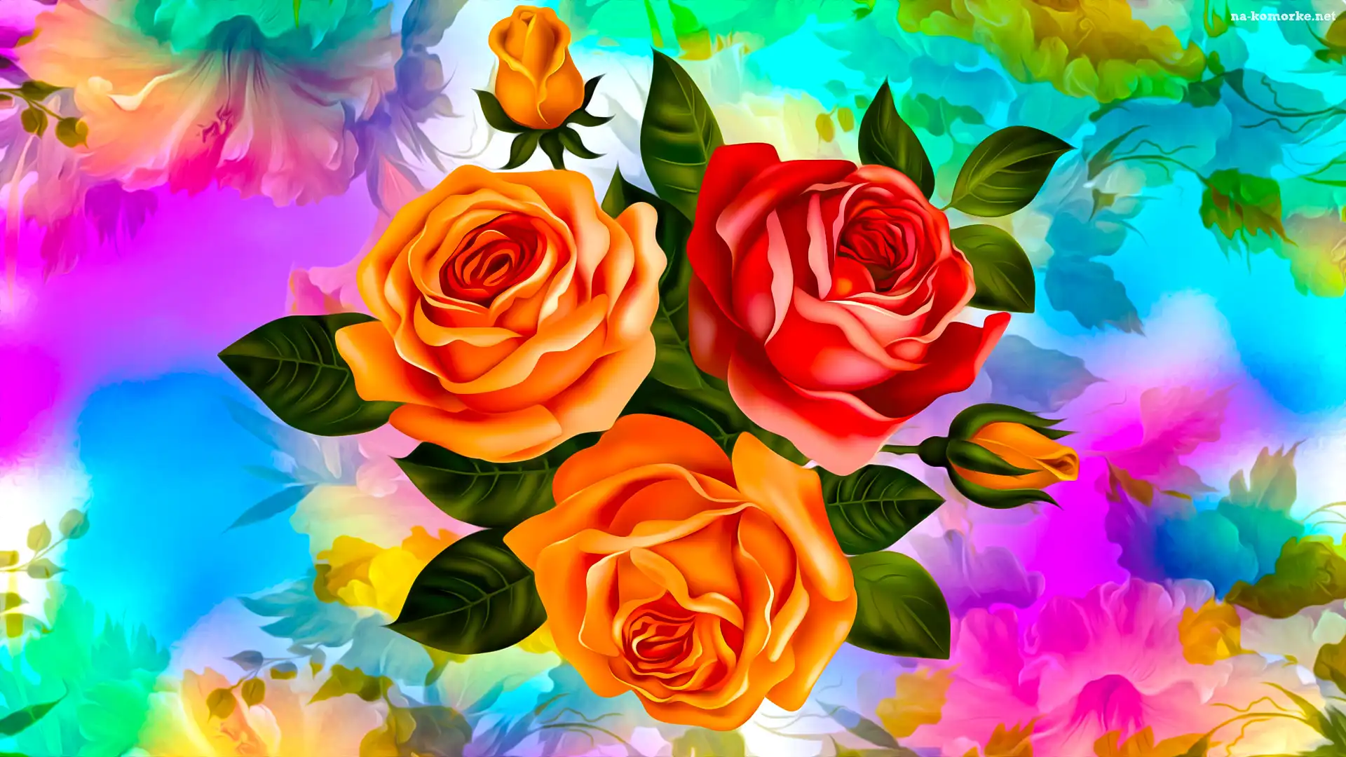 Kwiaty, 2D, Trzy, Róże na Komórkę