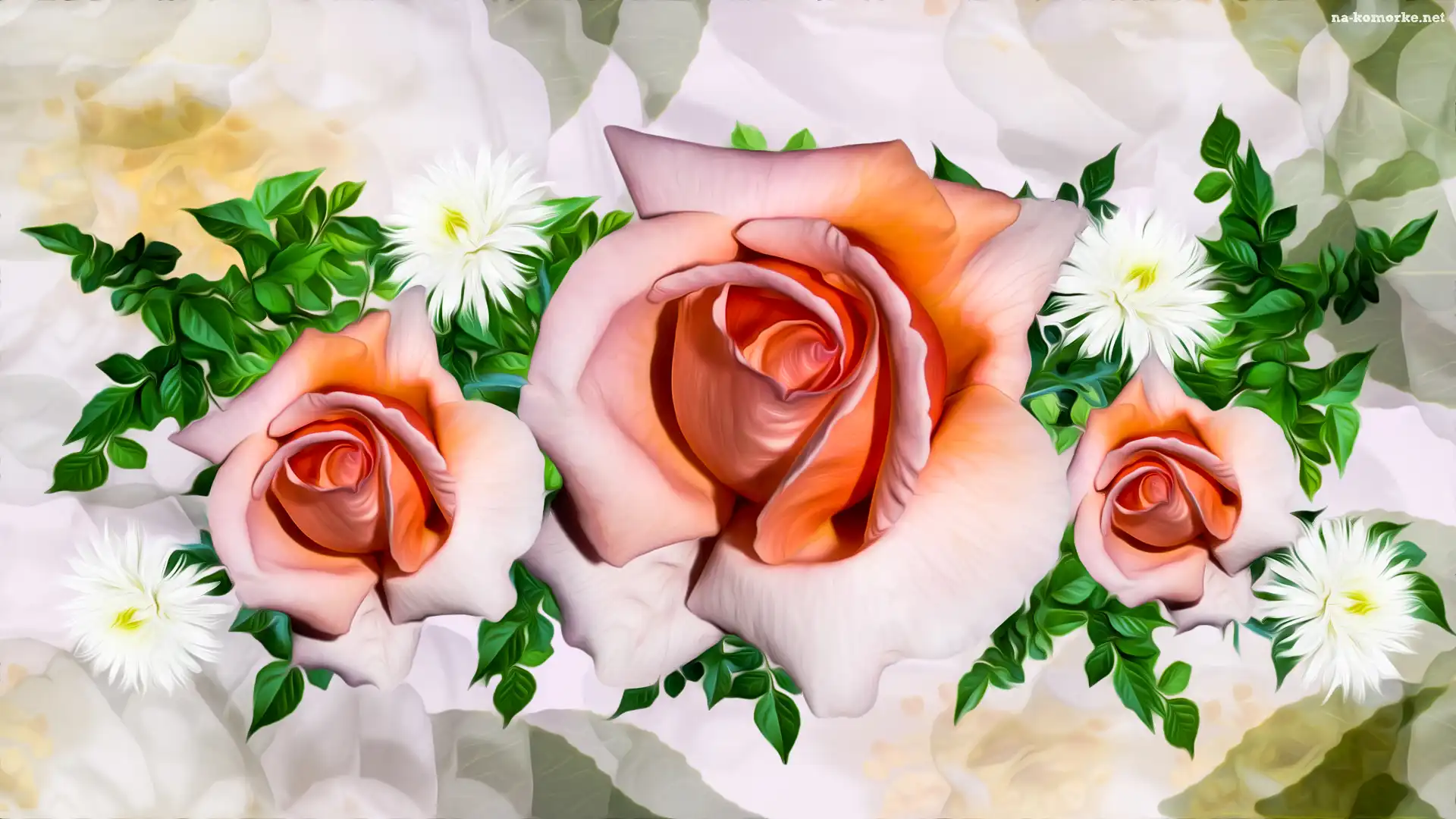 Kwiaty, Grafika, Trzy, Róże na Komórkę