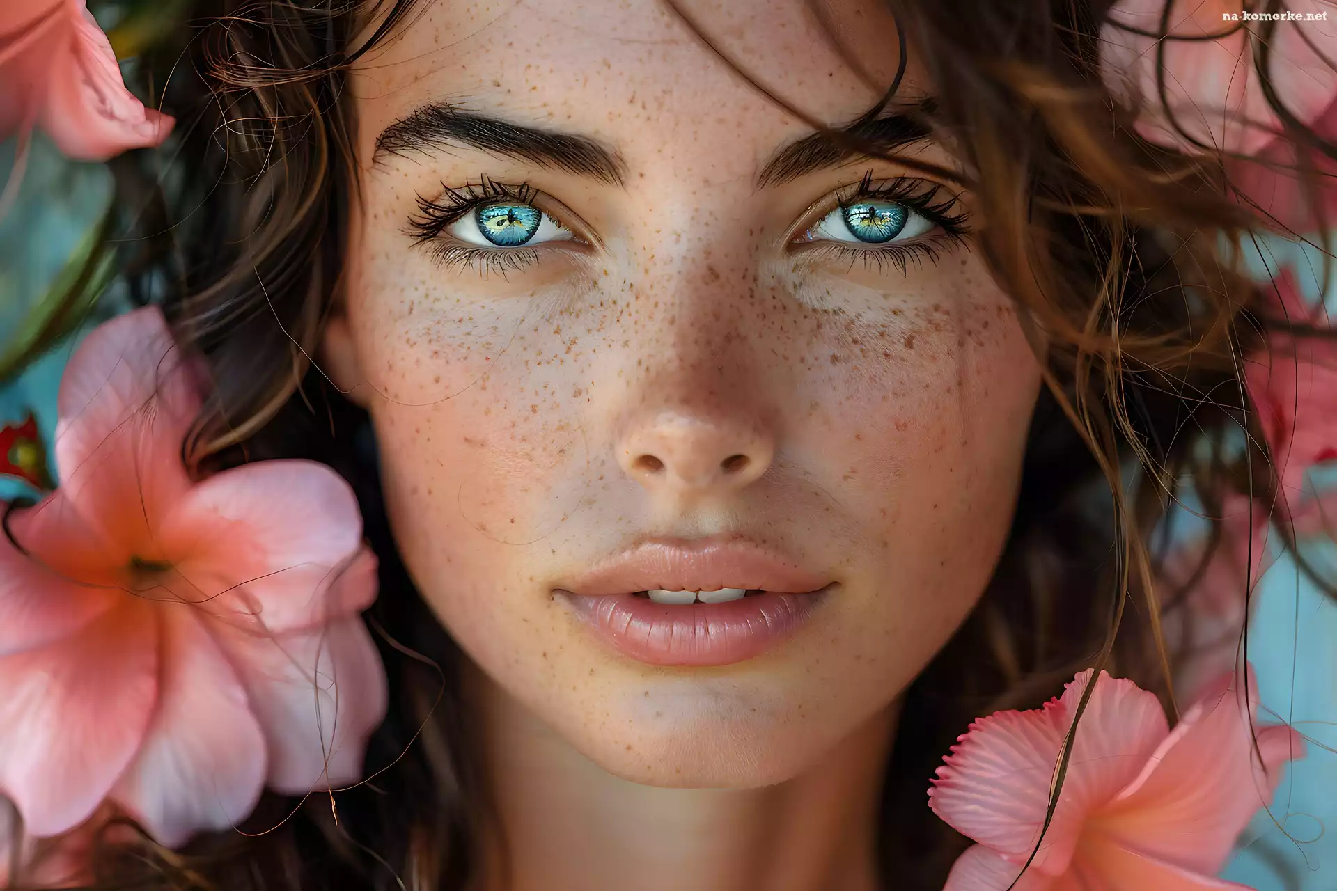 Oczy, Dziewczyna, Zielone, Kwiaty, Piegi, Twarz na Komórkę