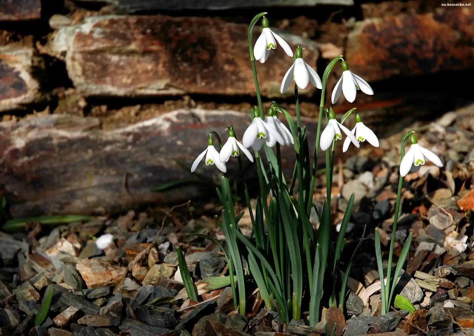 Wiosenne, Kwiaty, Przebiśniegi na Komórkę