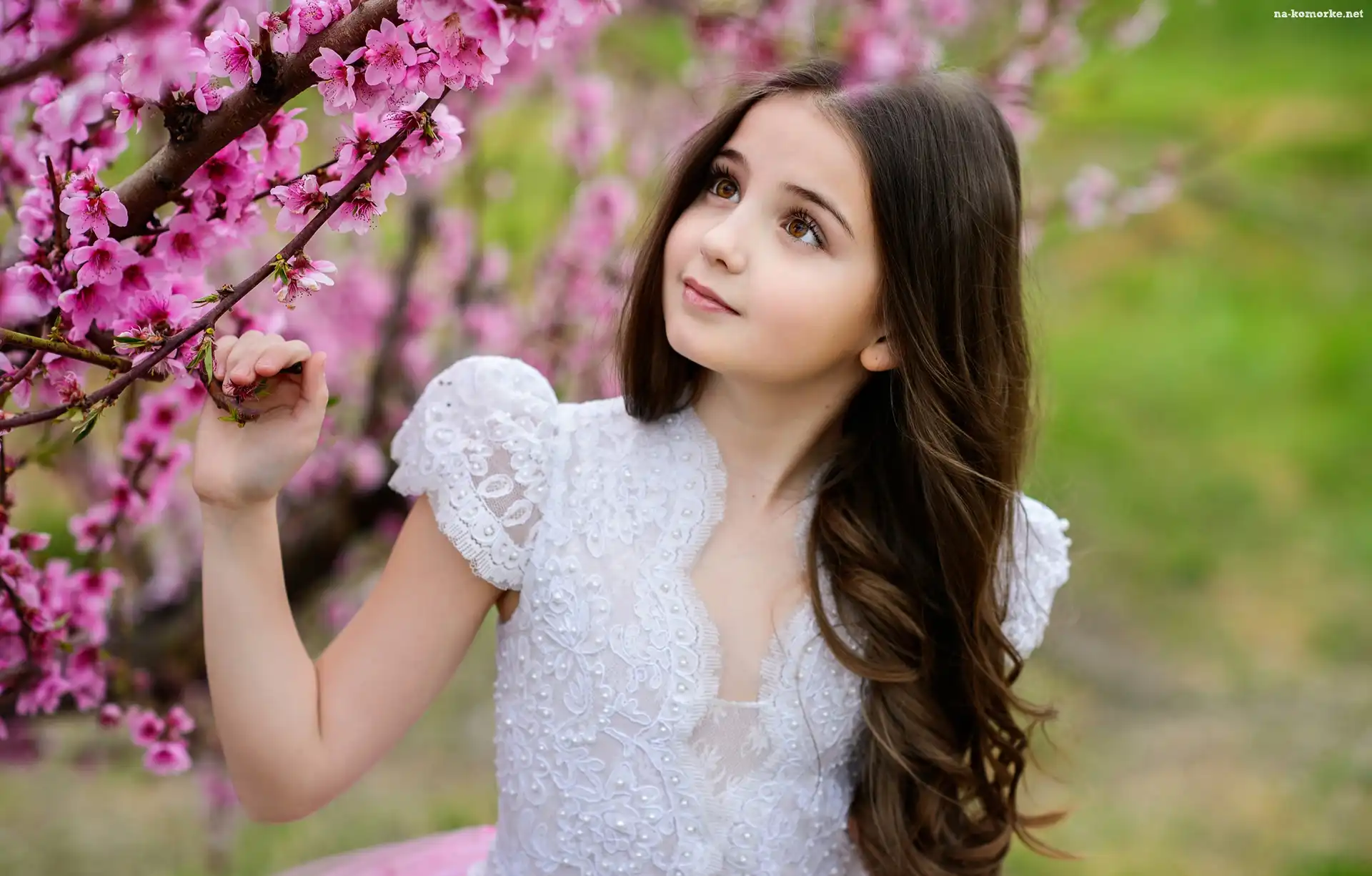 Kwiaty, Dziewczynka, Długie, Włosy, Sukienka na Komórkę