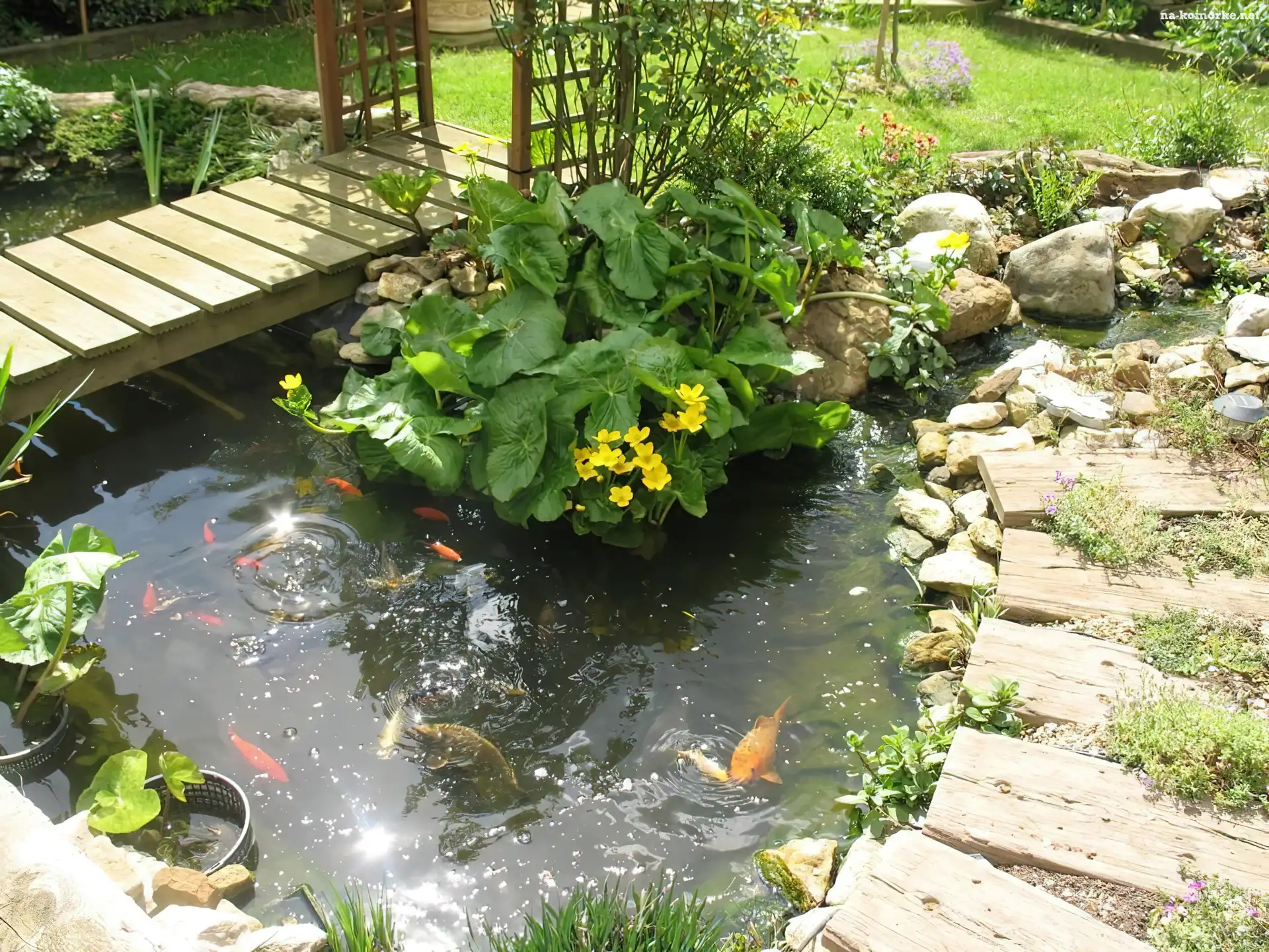 Kwiaty, Ogród, Oczko, Wodne, Ryby na Komórkę