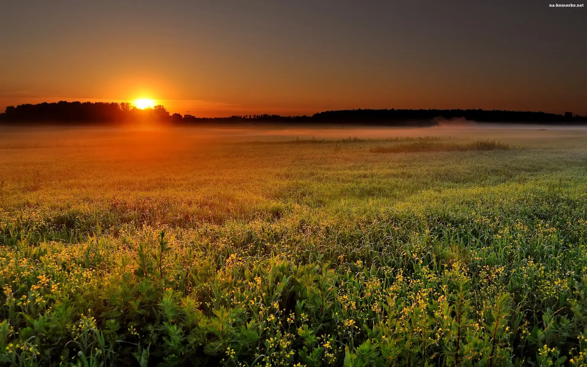 Kwiecista, Słońce, Łąka, Zachodzące na Komórkę