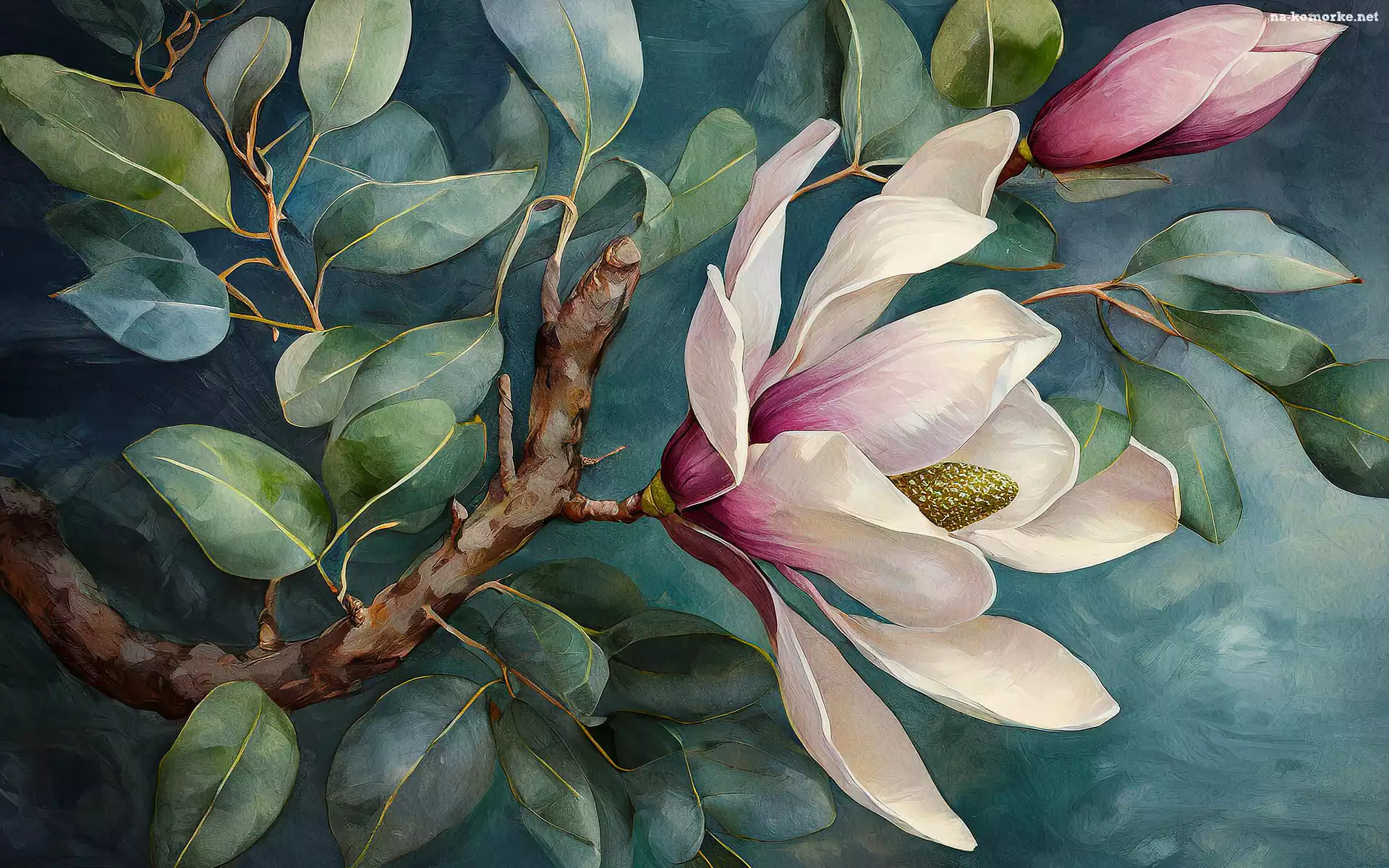 Krzew, Kwitnąca, Magnolia, Gałązka, Malarstwo na Komórkę