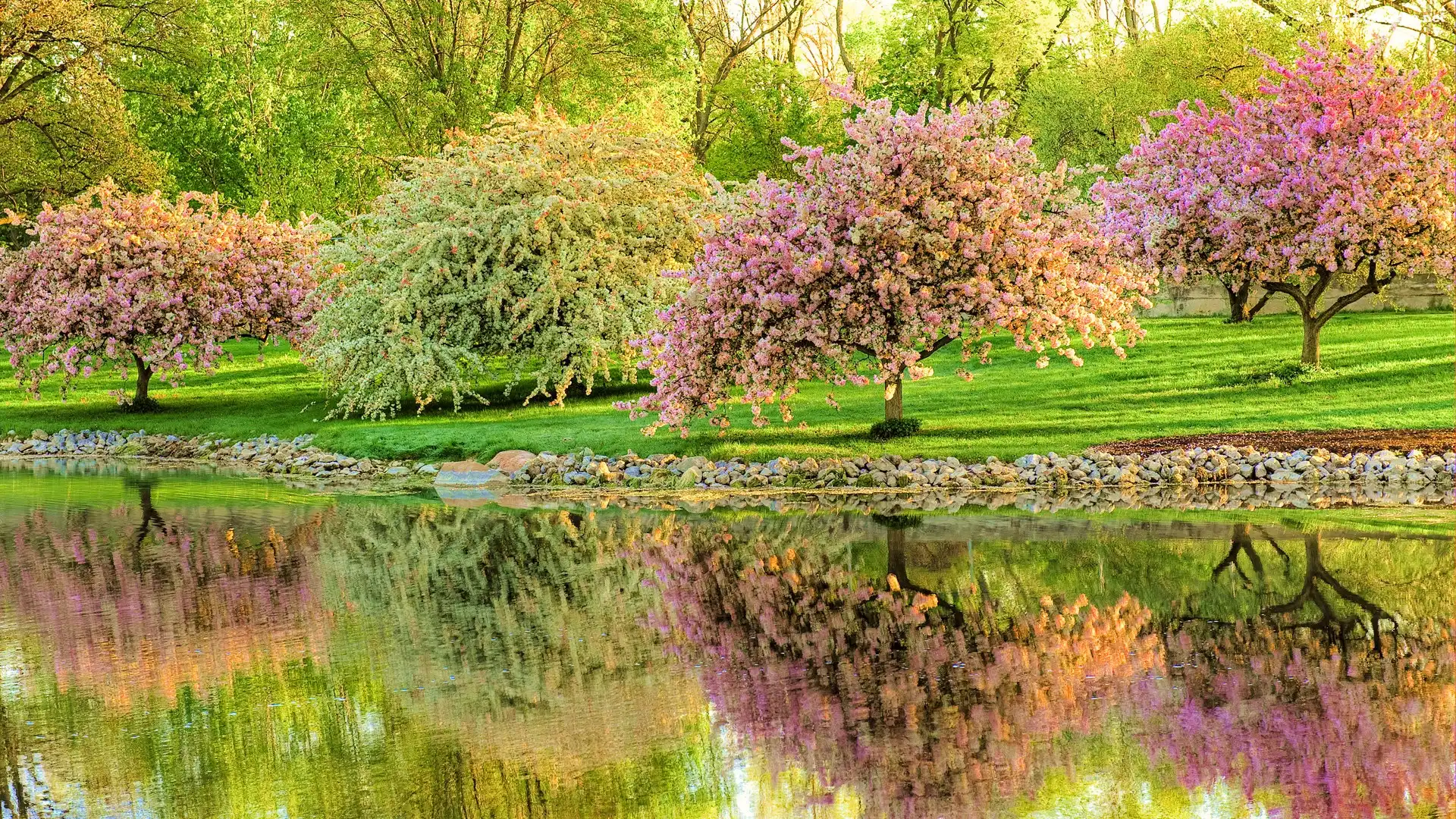 Kwitnące, Park, Drzewka, Rzeka na Komórkę