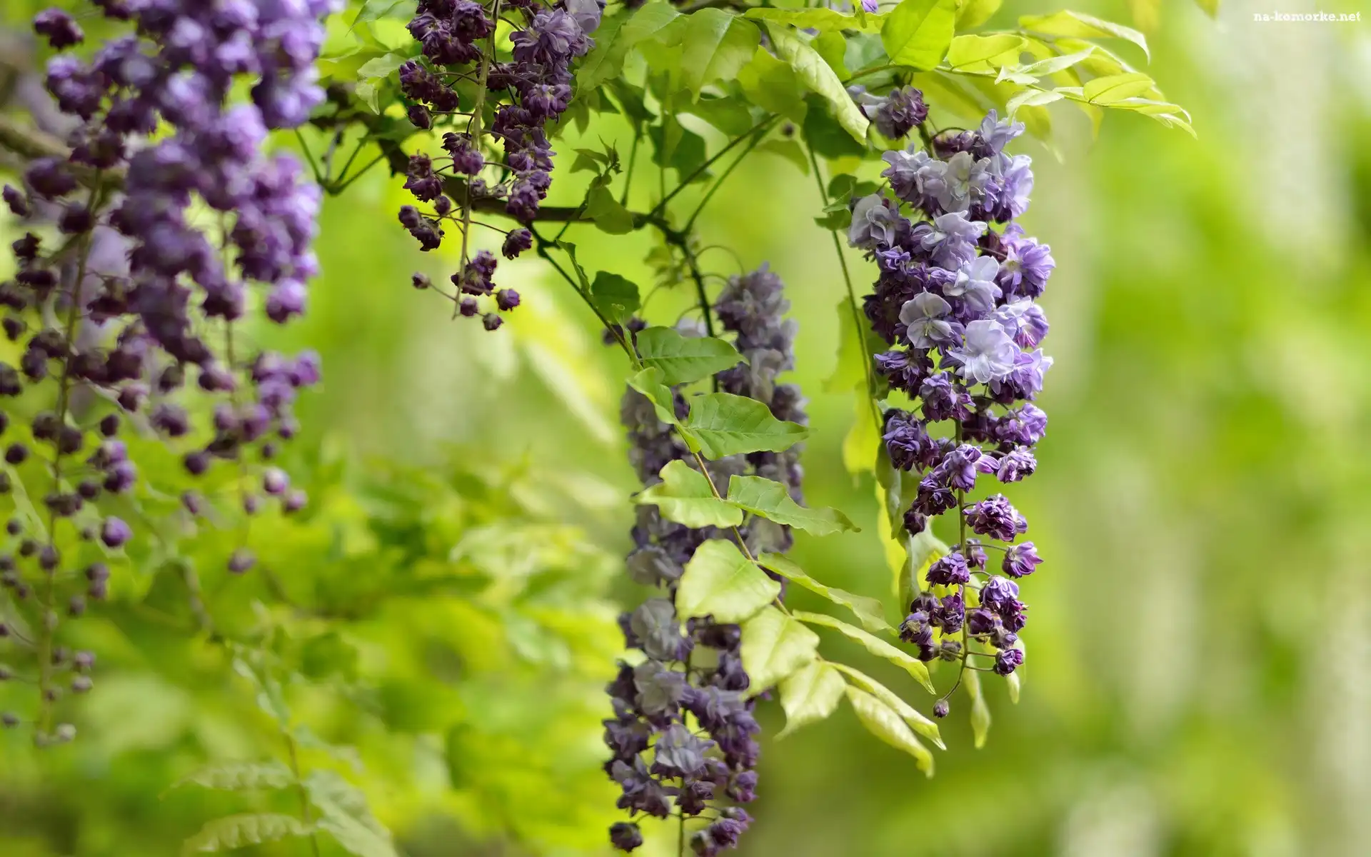 Fioletowe, Kwiaty, Glicynia na Komórkę