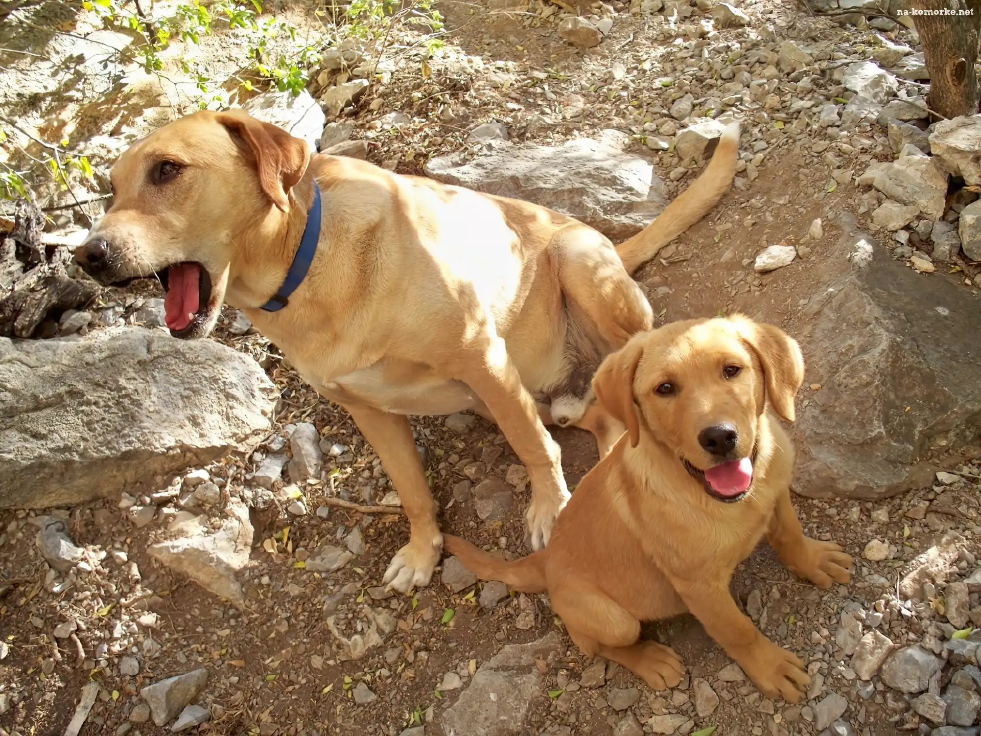 Labradory, Dwa, Rude, Pieski, Kamienie na Komórkę