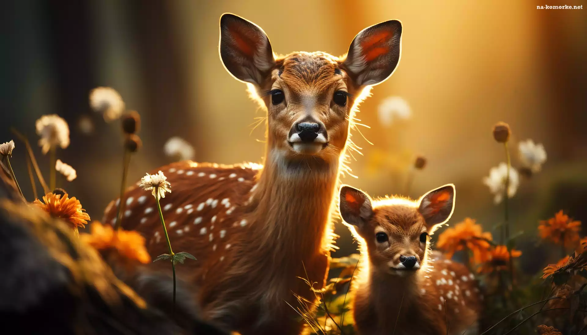 Sarna, Łąka, Grafika, Młode, Sarny na Komórkę