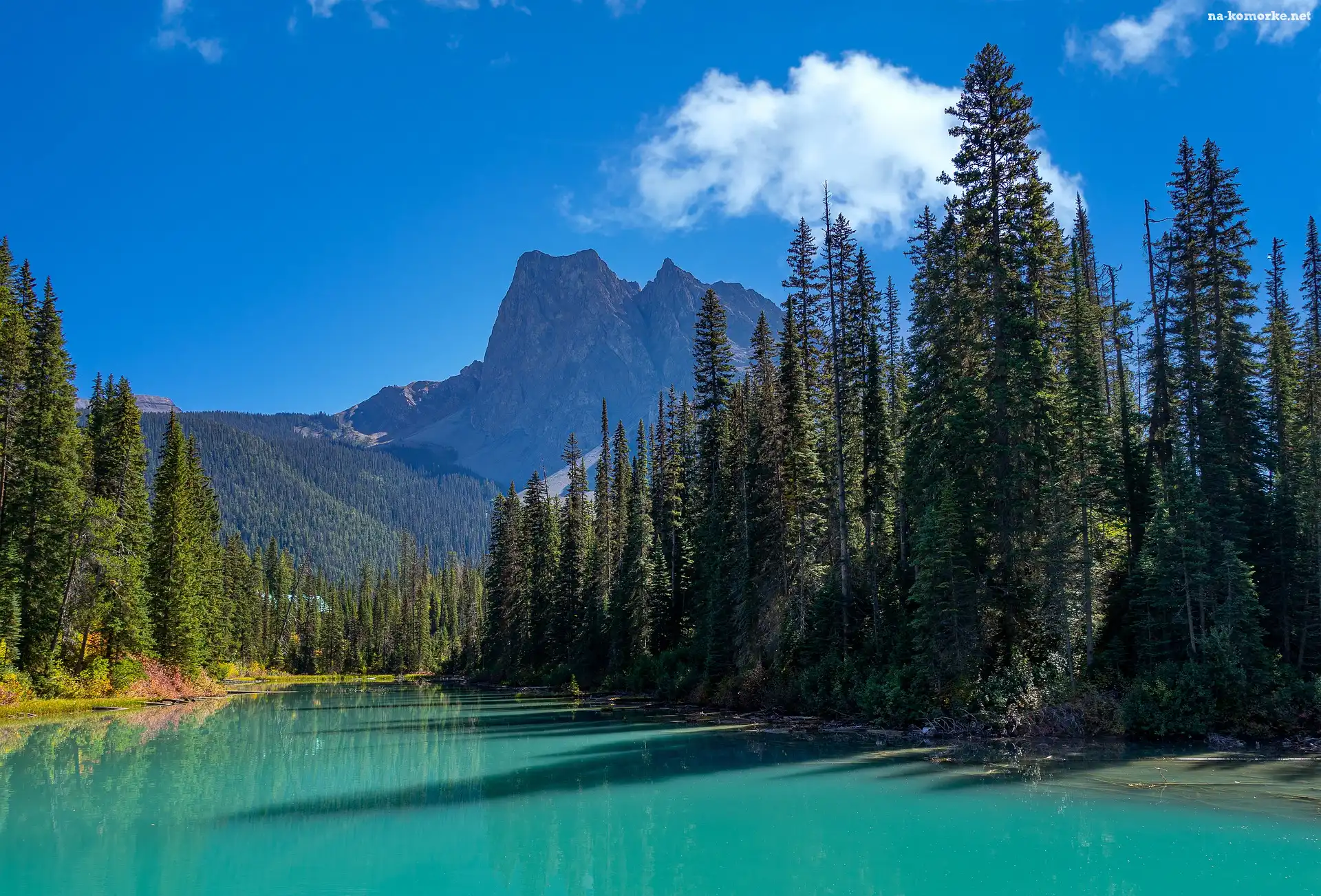 Jezioro, Kolumbia Brytyjska, Kanada, Emerald Lake, Drzewa, Góry Skaliste, Park Narodowy Yoho na Komórkę |