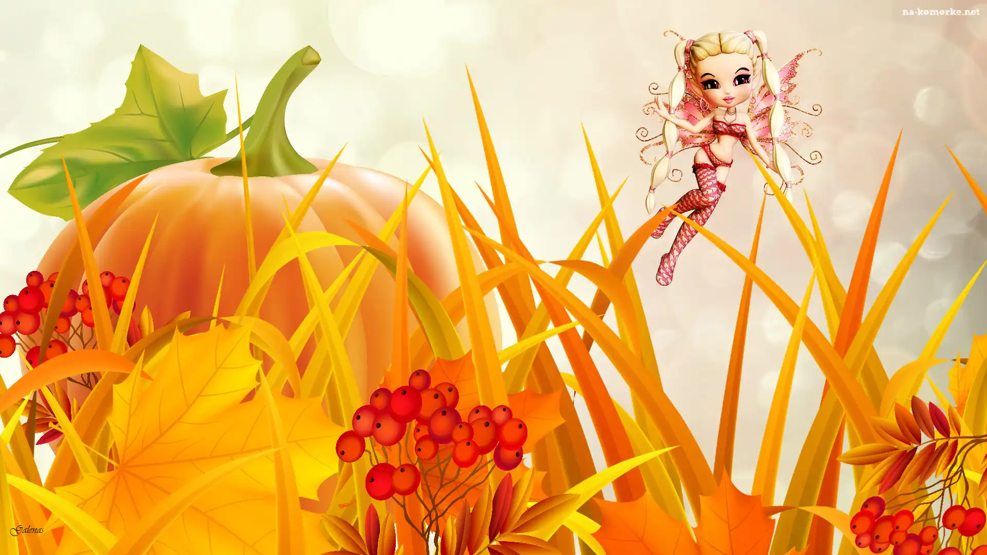 Dynia, Laleczka, Grafika, Trawa, Jarzębina, Liście, Jesień na Komórkę