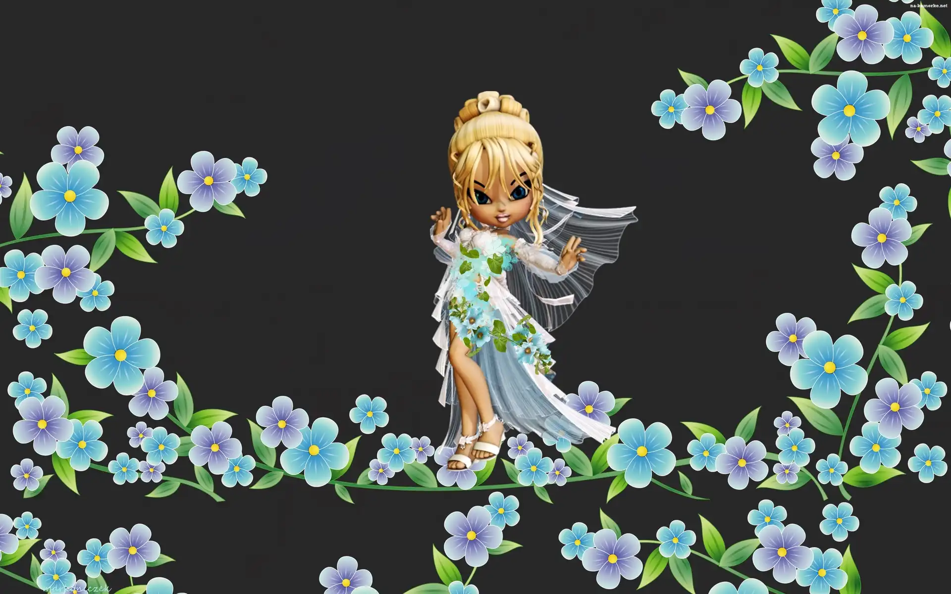 Grafika, Laleczka, Kwiaty na Komórkę