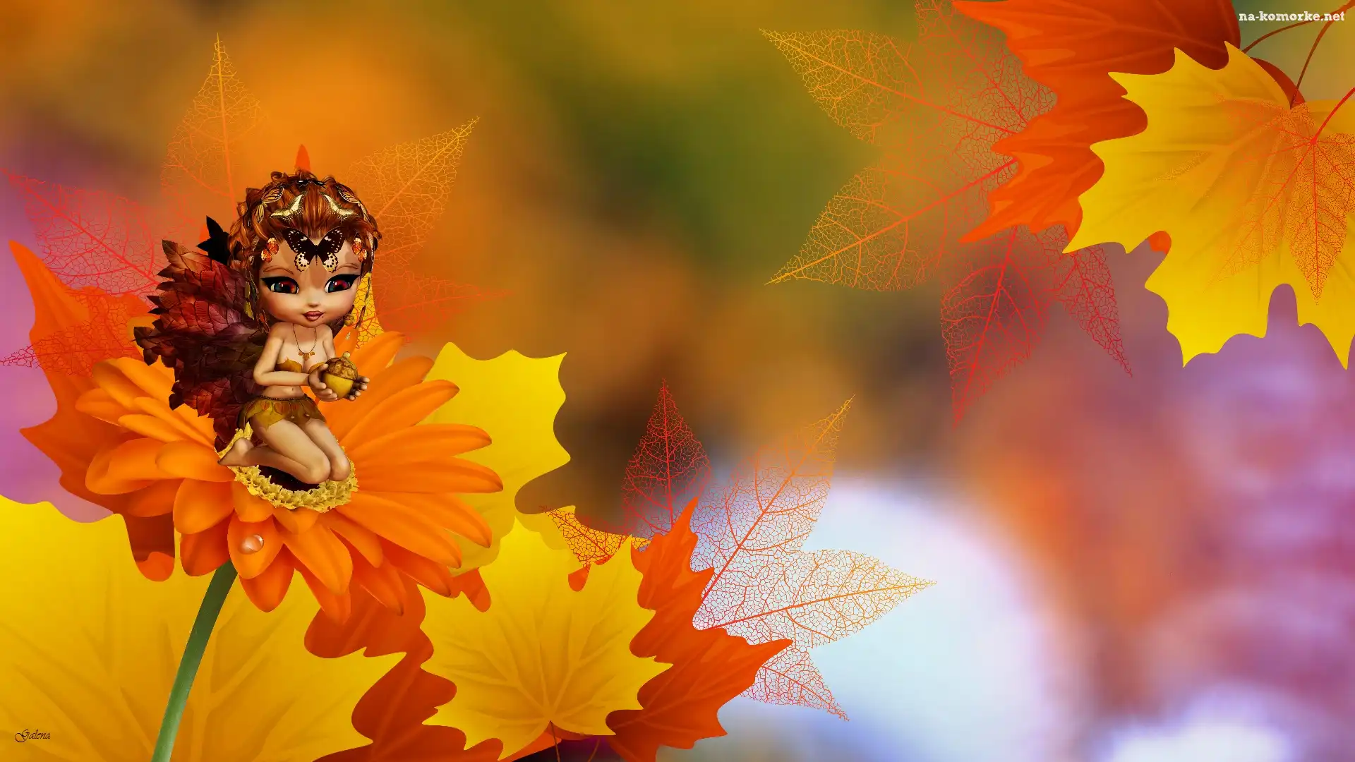 Laleczka, Jesień, Liście, Kwiat, Grafika na Komórkę