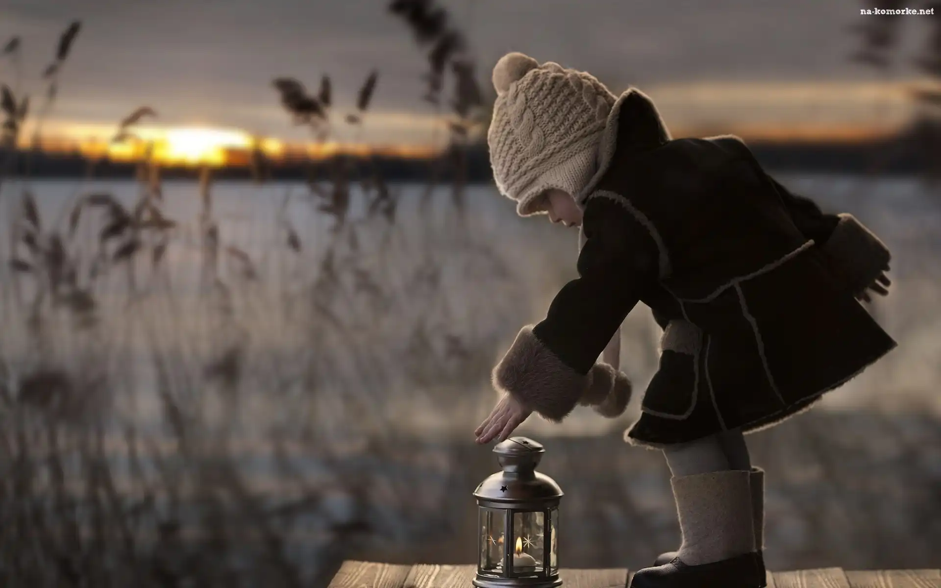 Lampion, Pomost, Dziecko, Słońca, Jezioro, Zachód na Komórkę
