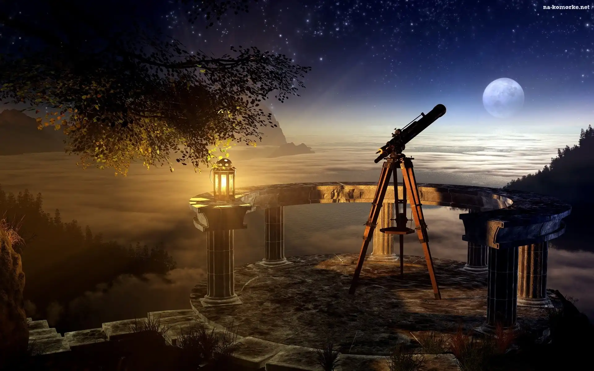 Mgła, Góry, Luneta, Punkt, Noc, Lasy, Księżyc, Obserwacyjny, Lampion na Komórkę