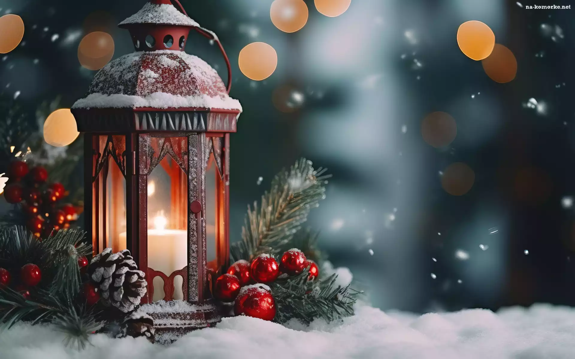Śnieg, Gałązki, Bombki, Lampion, Boże Narodzenie na Komórkę