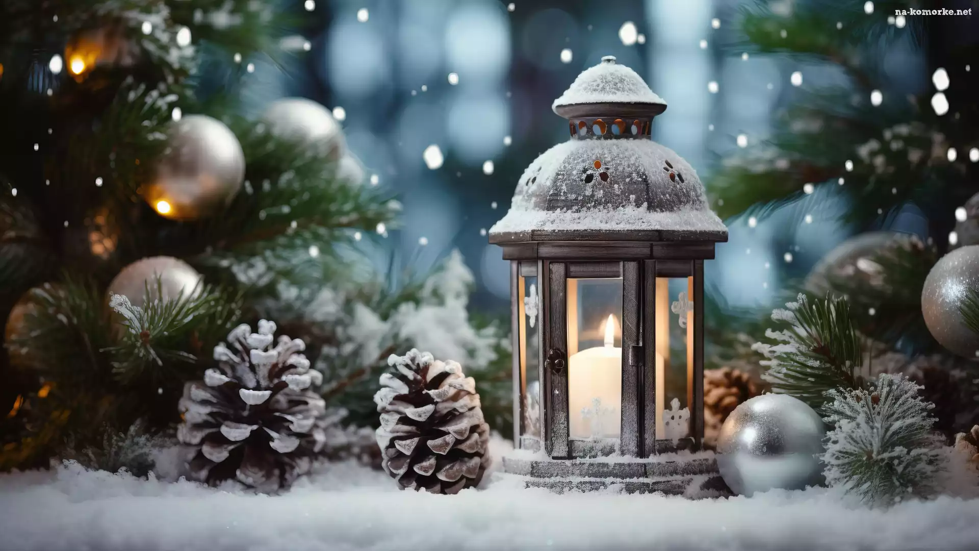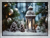 Lampion, Gałązki, Bombki, Zima, Szyszki, Boże Narodzenie, Świeca, Śnieg na Komórkę