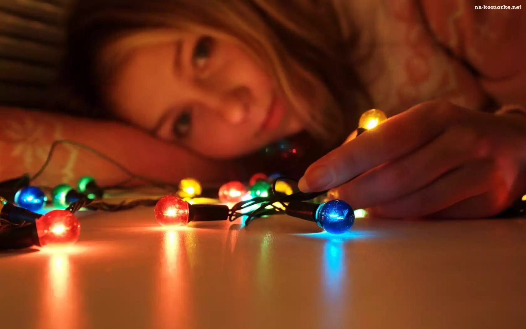 Kobieta, Lampki, Światełka na Komórkę