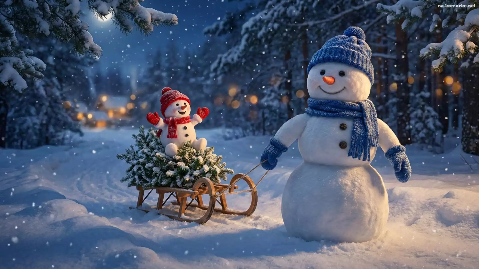 Bałwanki, Sanki, Zima, Las na Komórkę