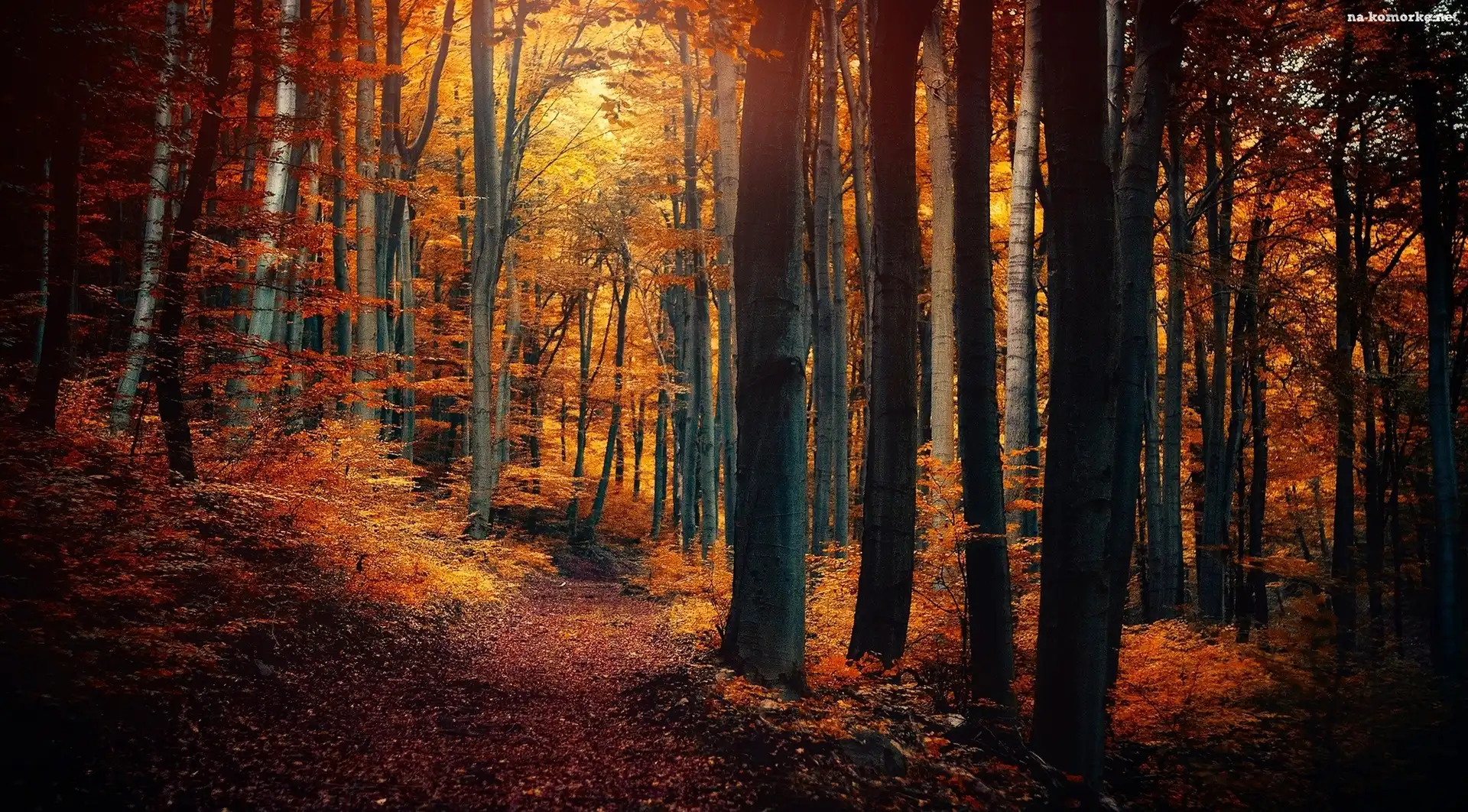 Las, Jesień, Ścieżka, Liście na Komórkę