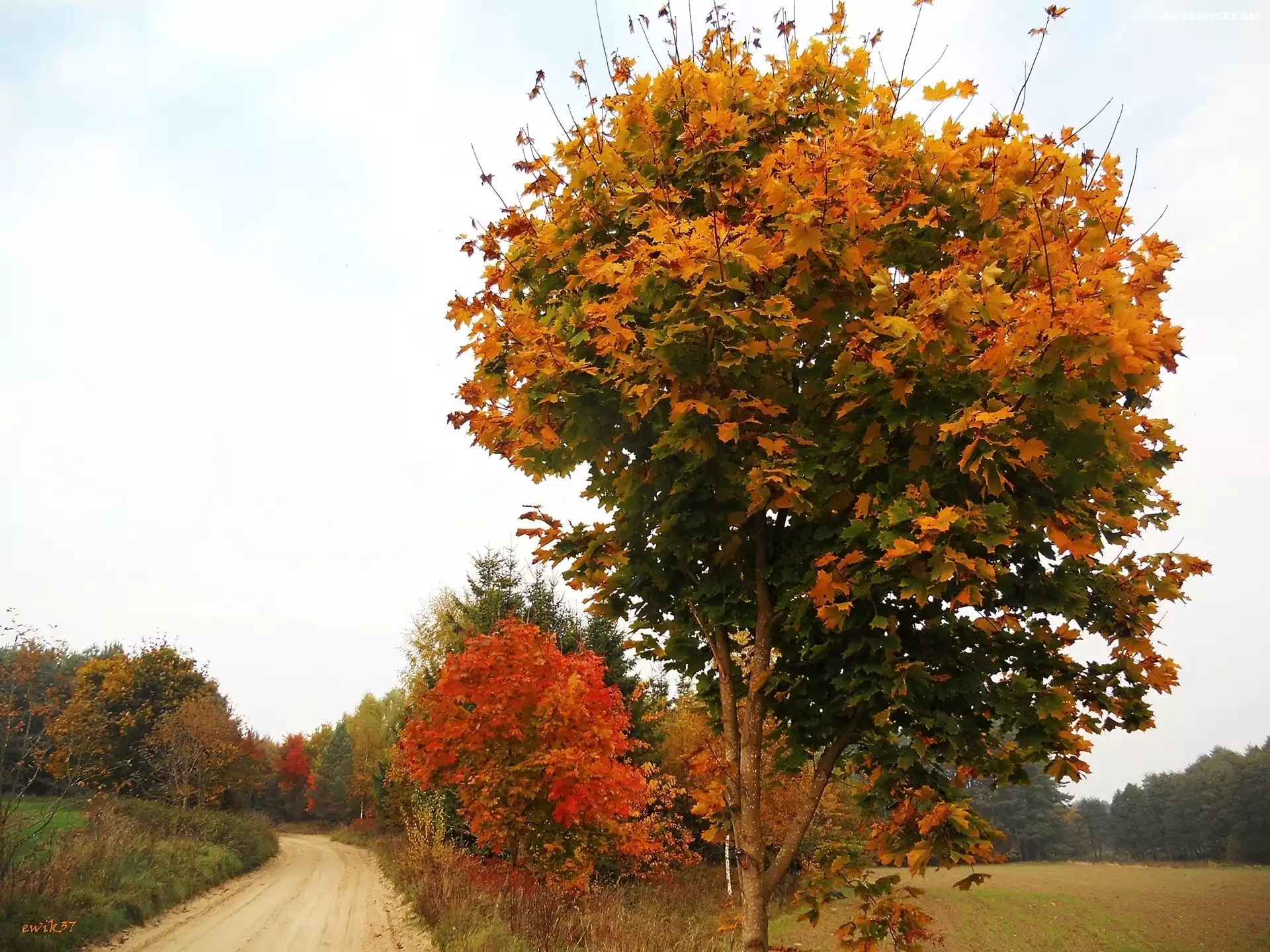 Las, Klonowe, Drzewo, Droga, Pole na Komórkę