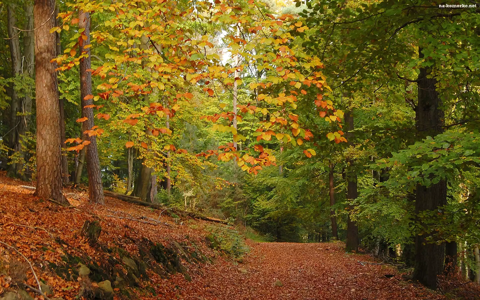 Las, Jesień, Droga, Liście na Komórkę