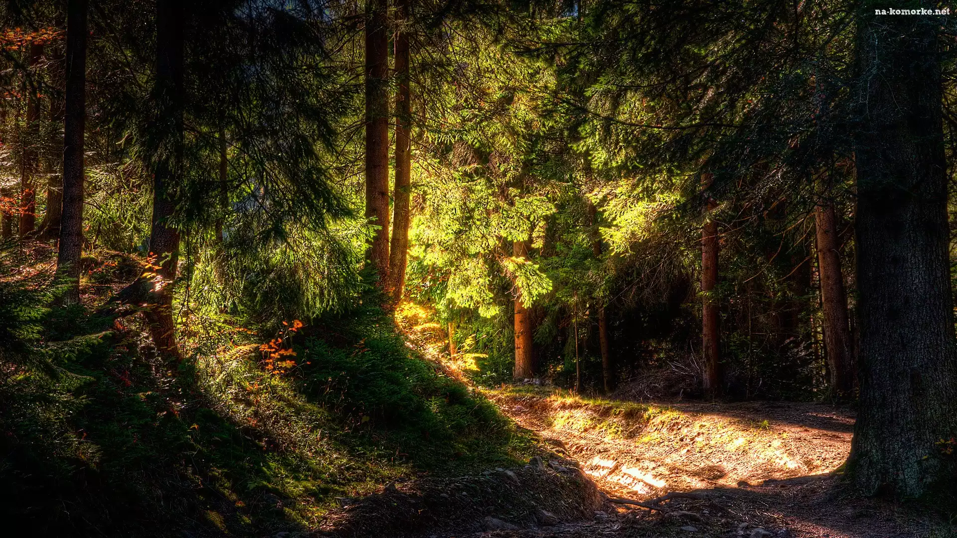 Las, Słońca, Droga, Promienie na Komórkę