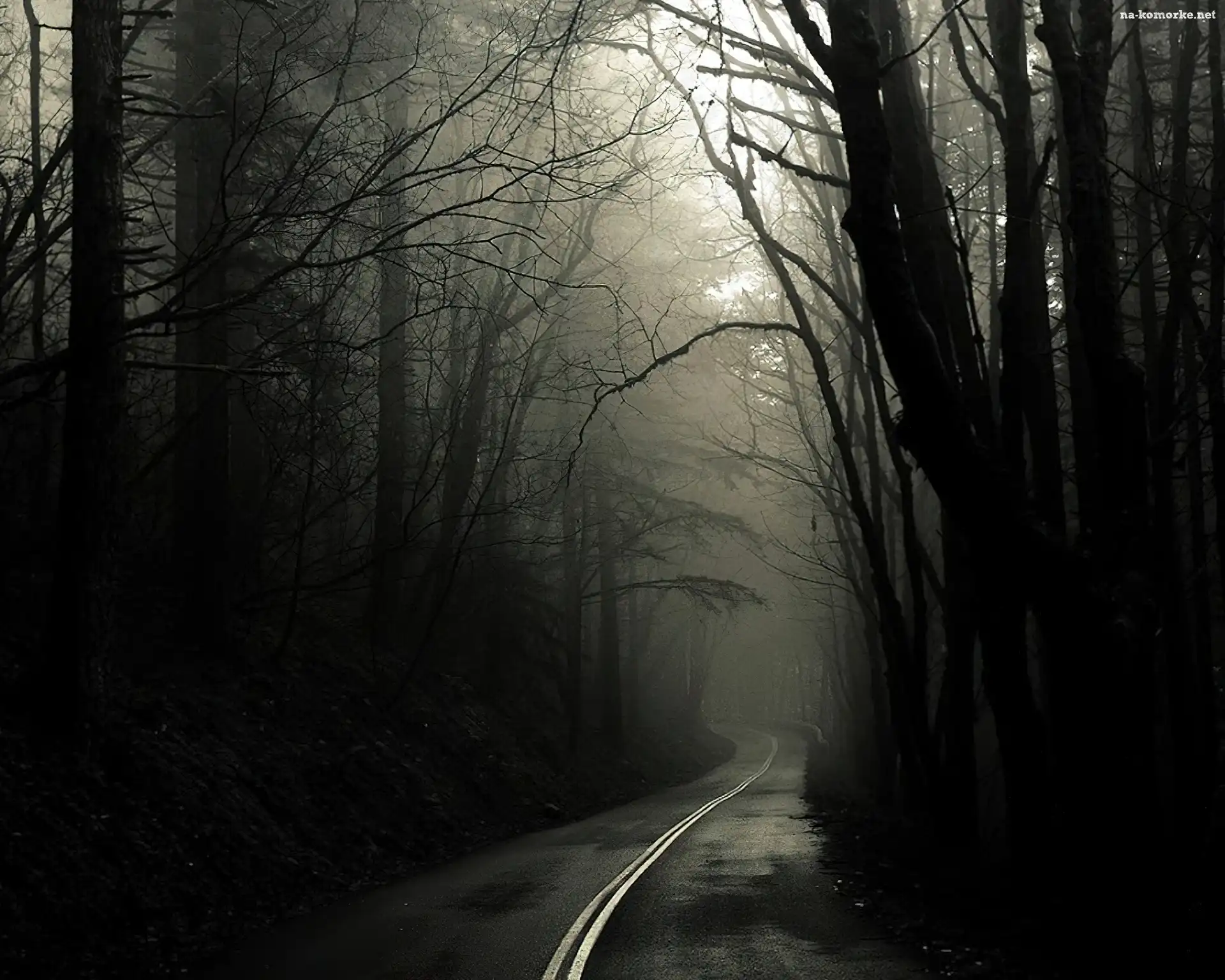 Las, Mgłą, Drzewa, Droga na Komórkę