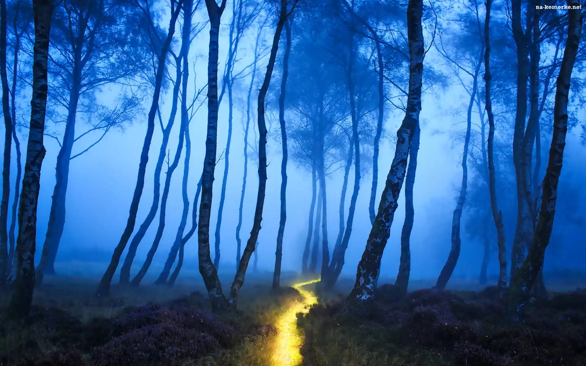 Las, Scieżka, Drzewa, Mgła na Komórkę