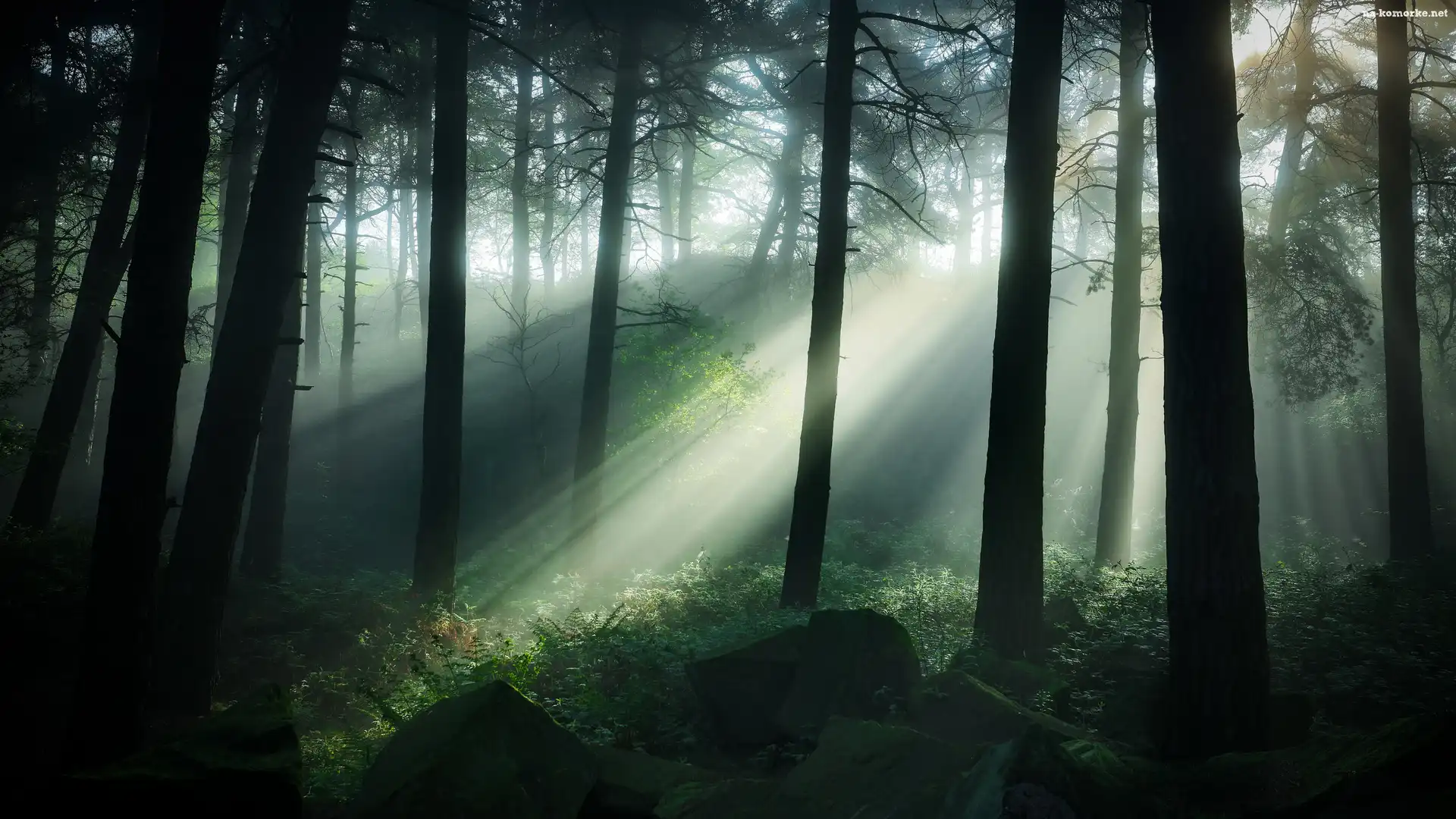 Las, Przebijające Światło, Drzewa, Mgła na Komórkę