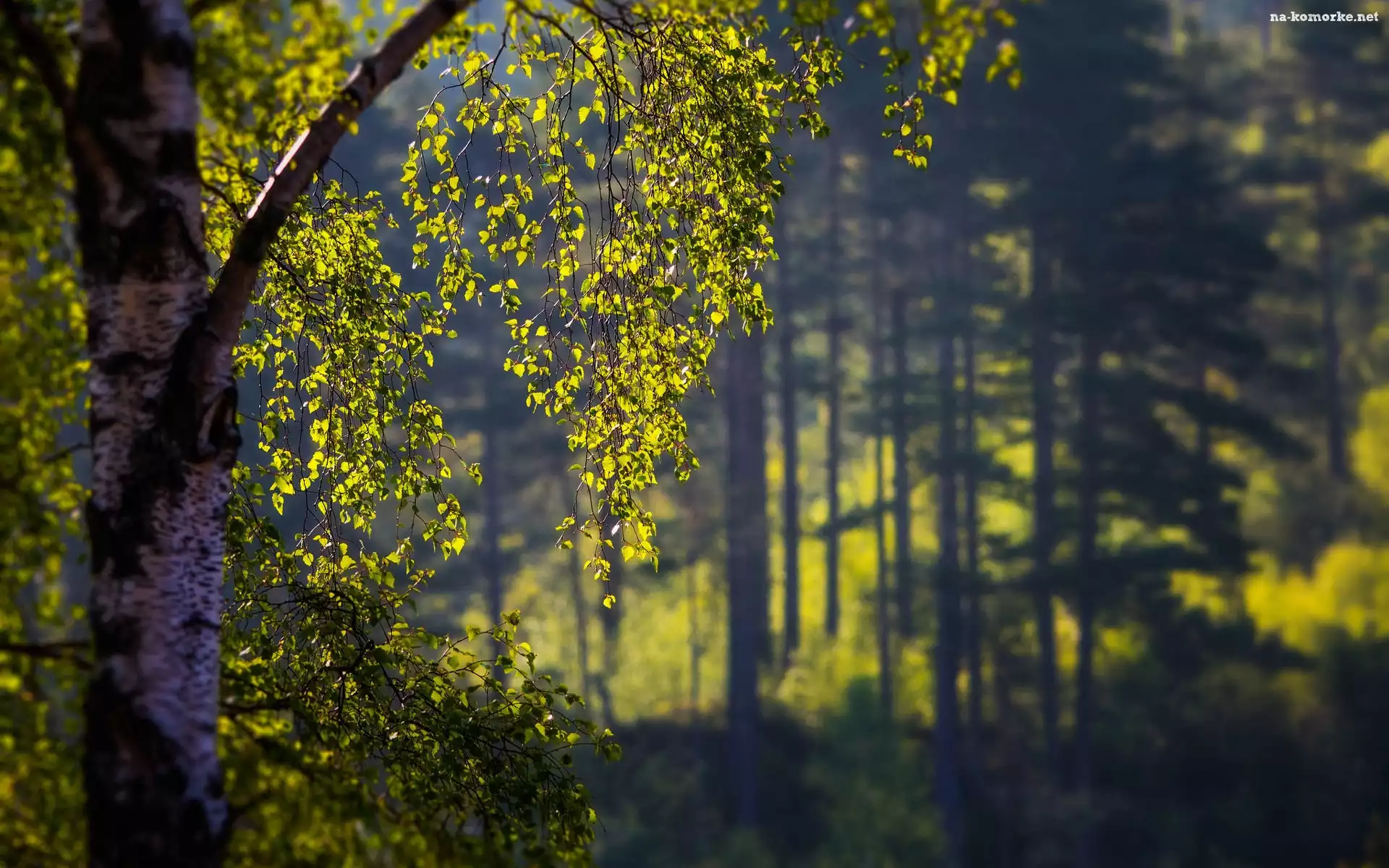 Las, Światło, Drzewo, Brzoza na Komórkę
