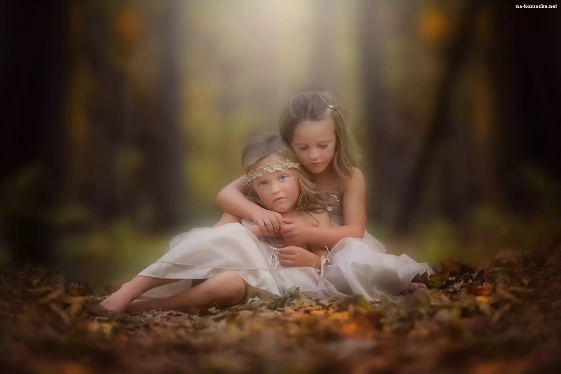 Dziewczynki, Las, Liście na Komórkę