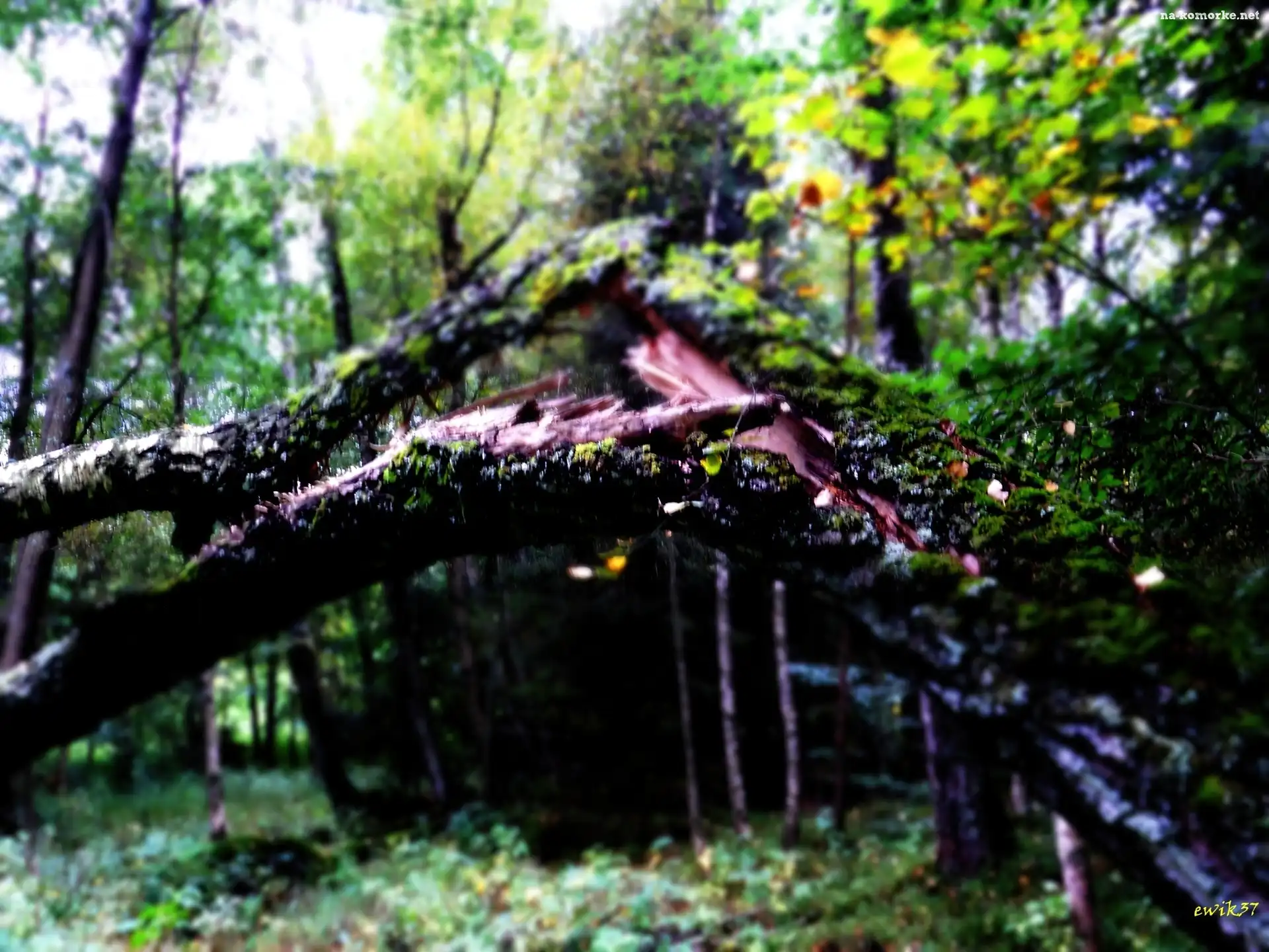 Las, Drzewo, Jesień, Połamane na Komórkę