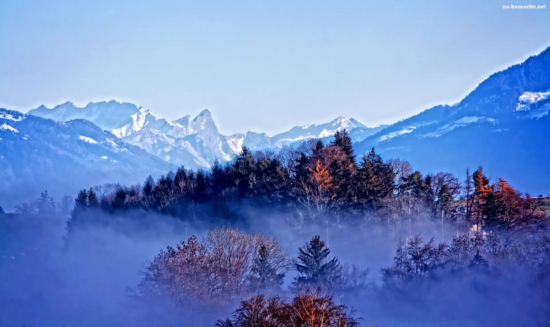 Świt, Jesień, Góry, Las, Mgła na Komórkę